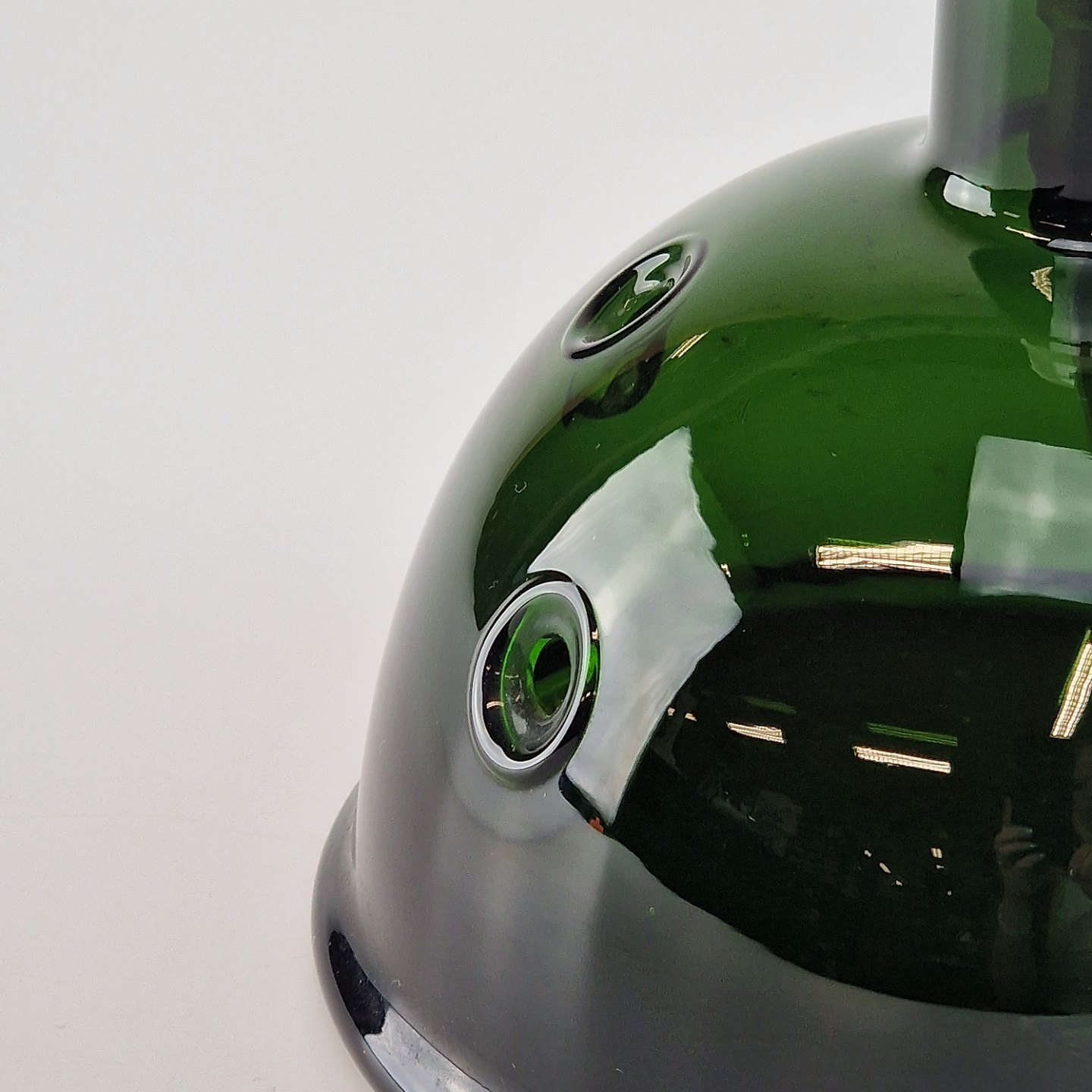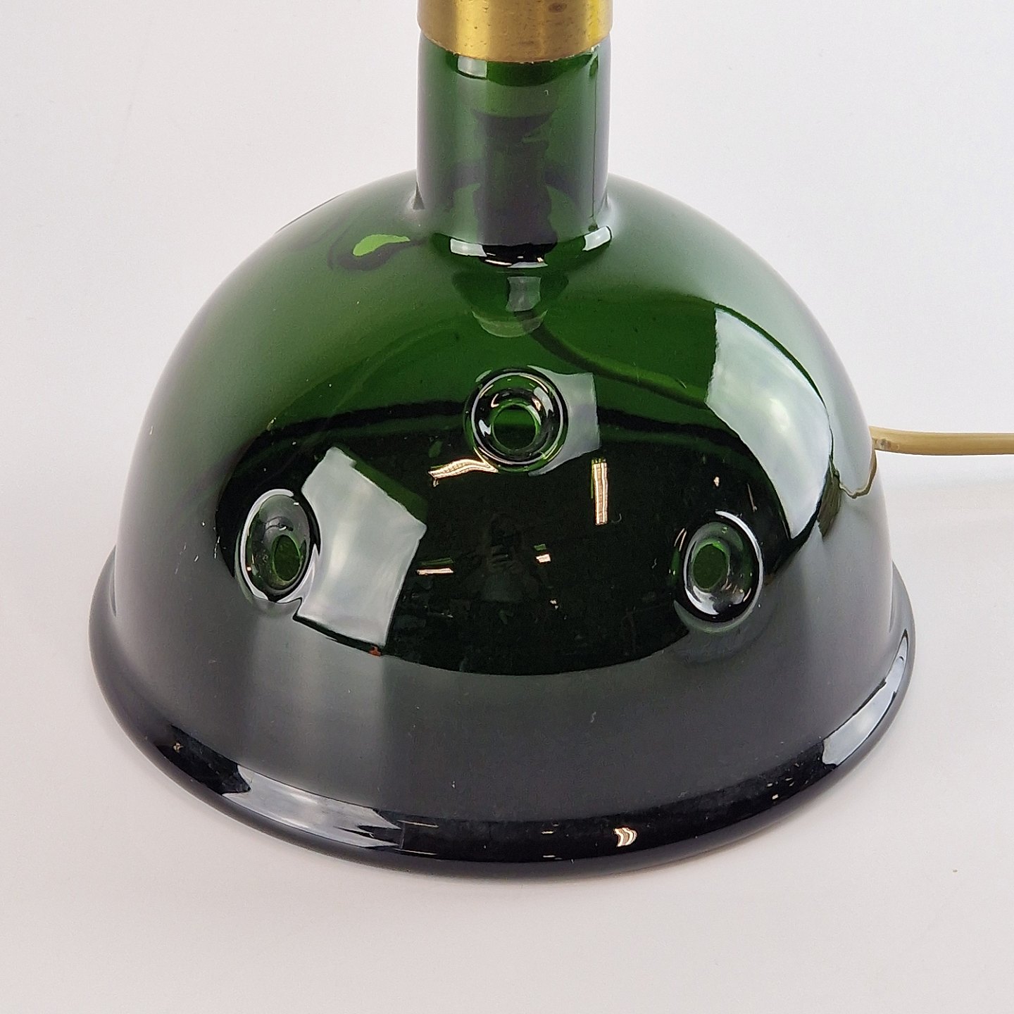 Mundblæst lampe af grønt glas med 5 dekorative huller i.