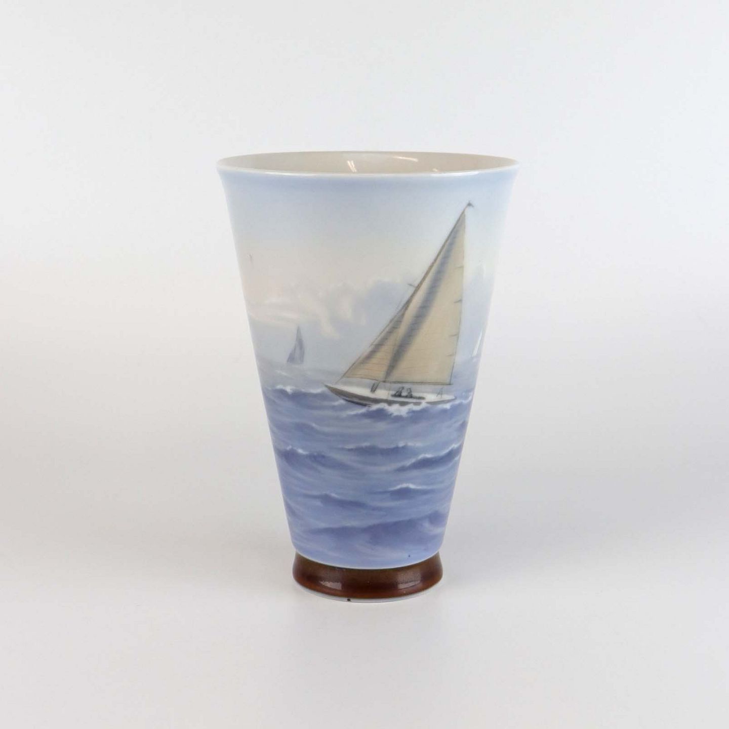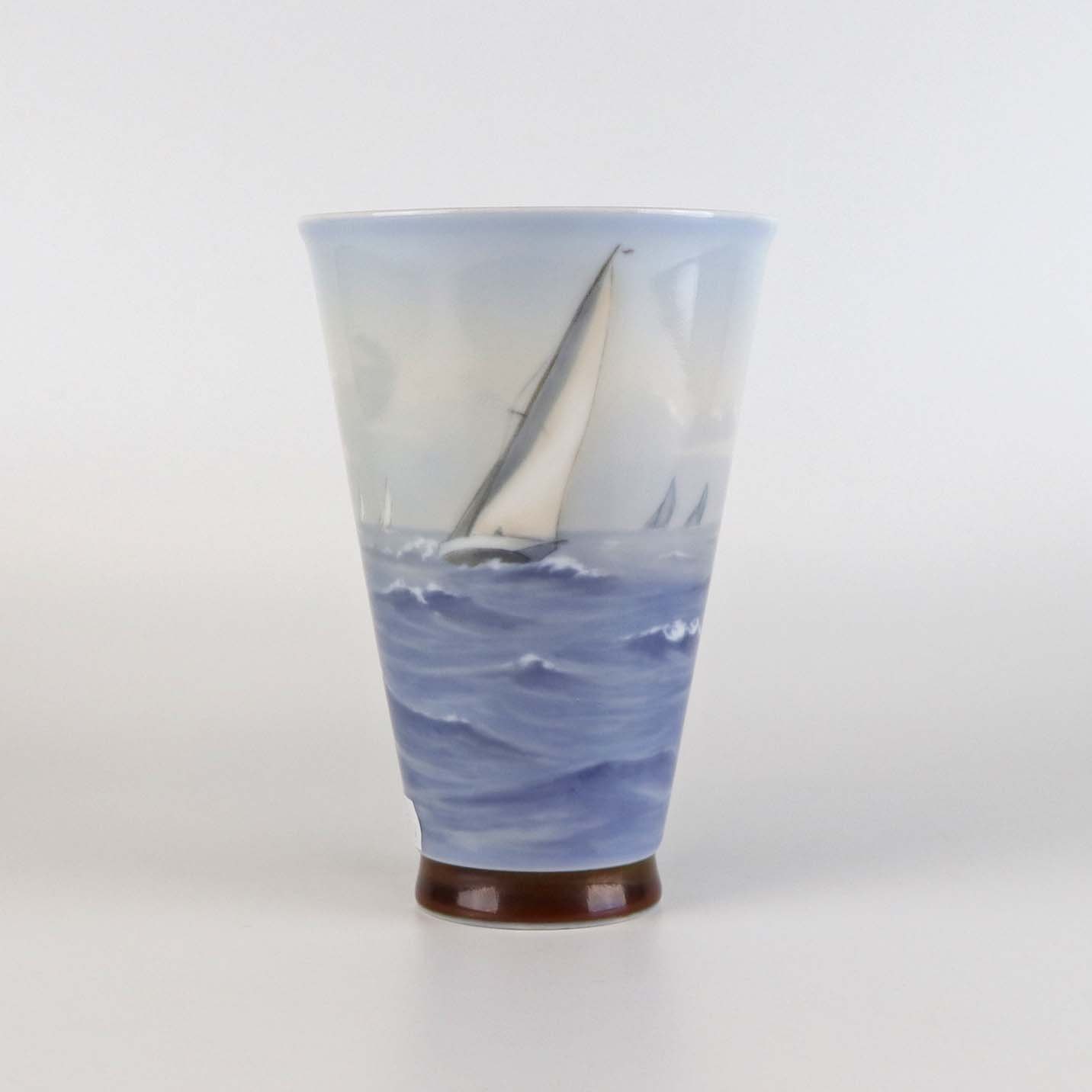 Vase af porcelæn decoreret med motiv af sejlbåd. No 8629/423
