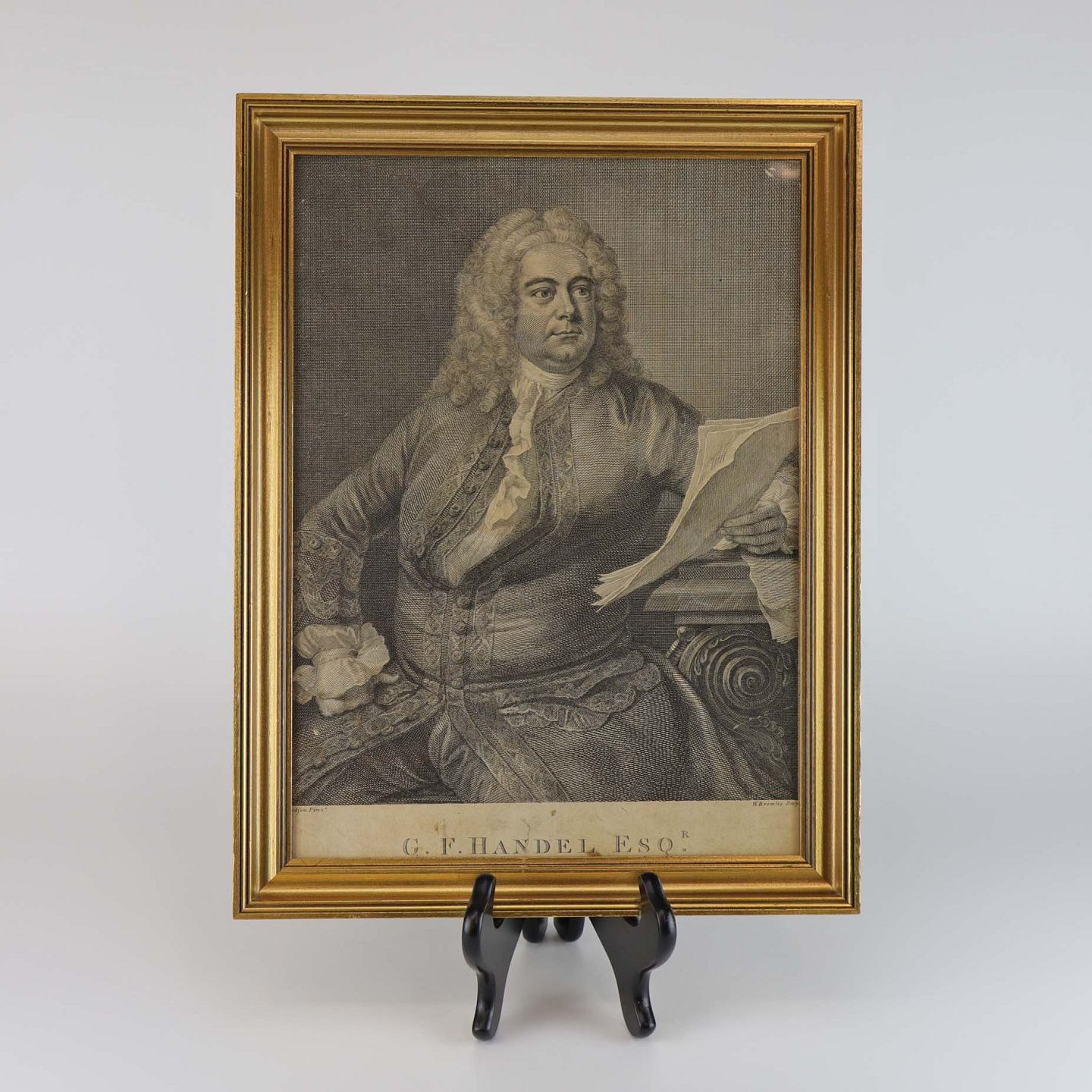 Indrammet kobberstik tryk i gylden ramme, af William Bromley (1789) efter maleri af Thomas Hudson.