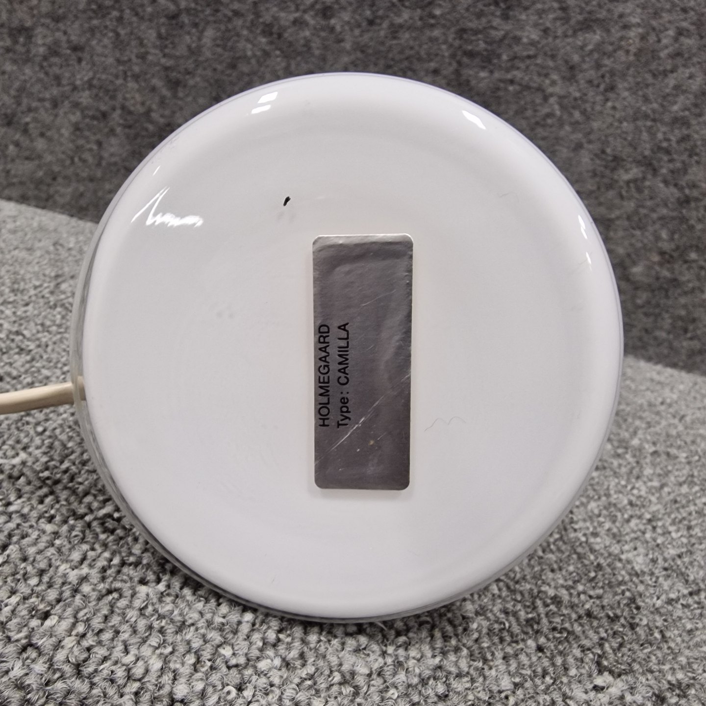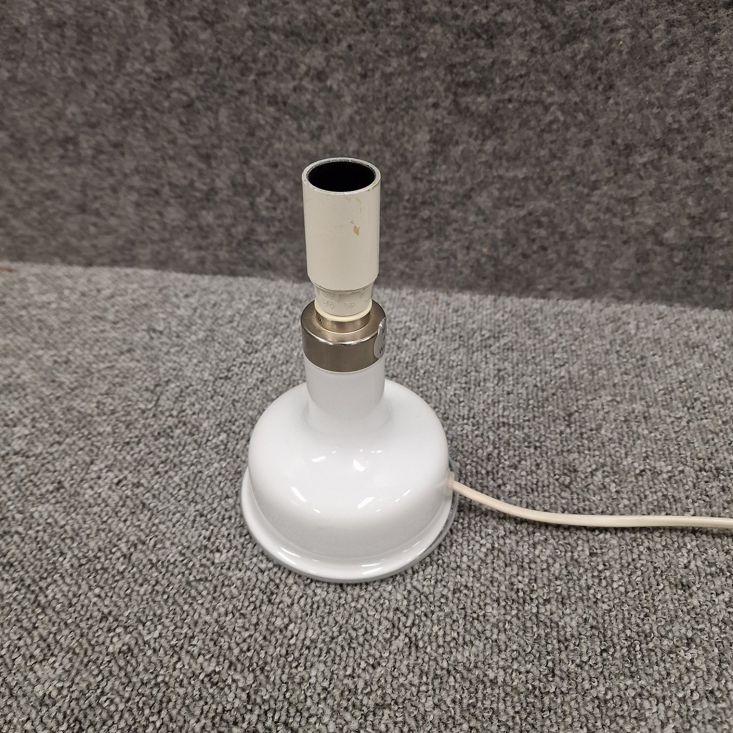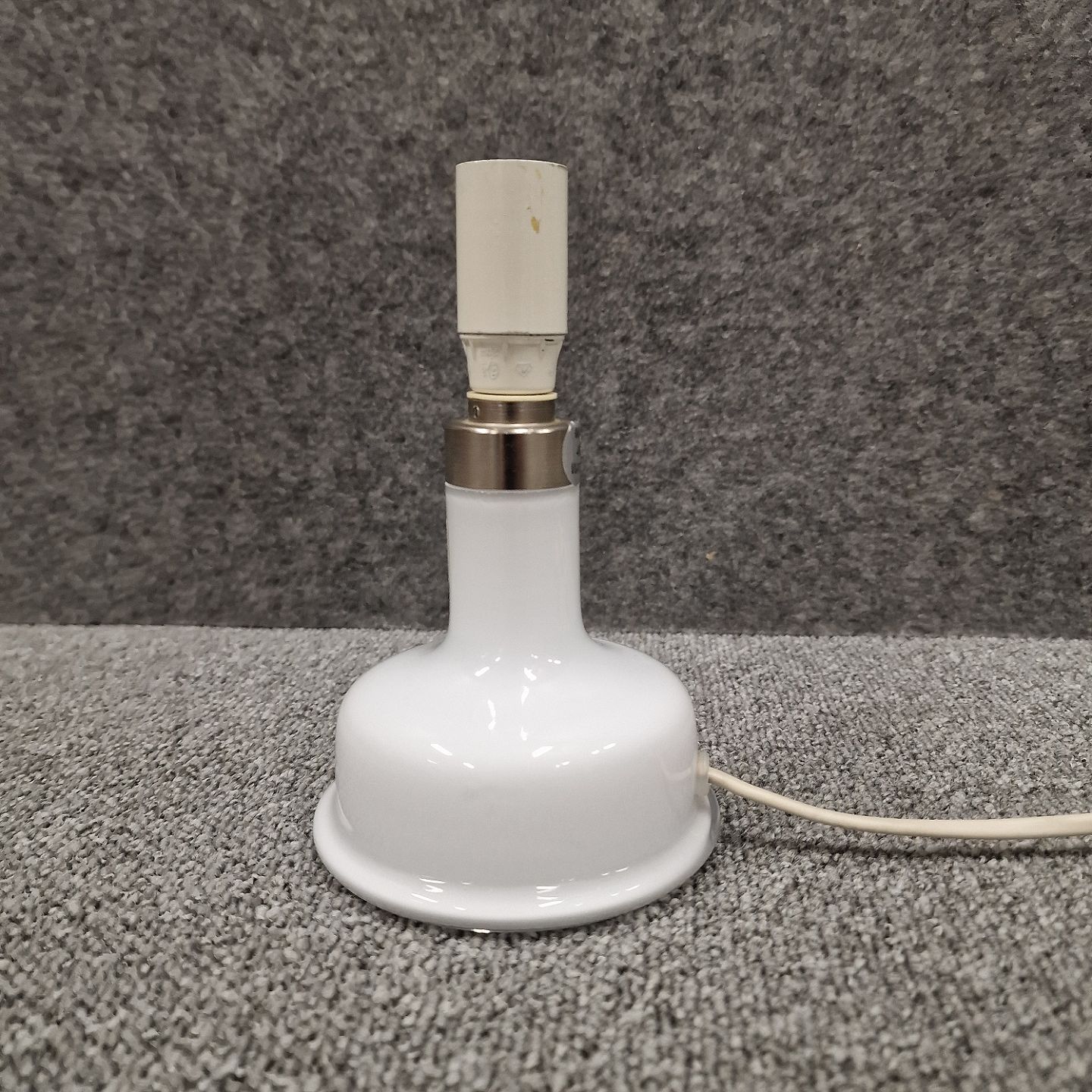 Bordlampe af mundblæst opal hvidt glas. Fremstillet i 1982