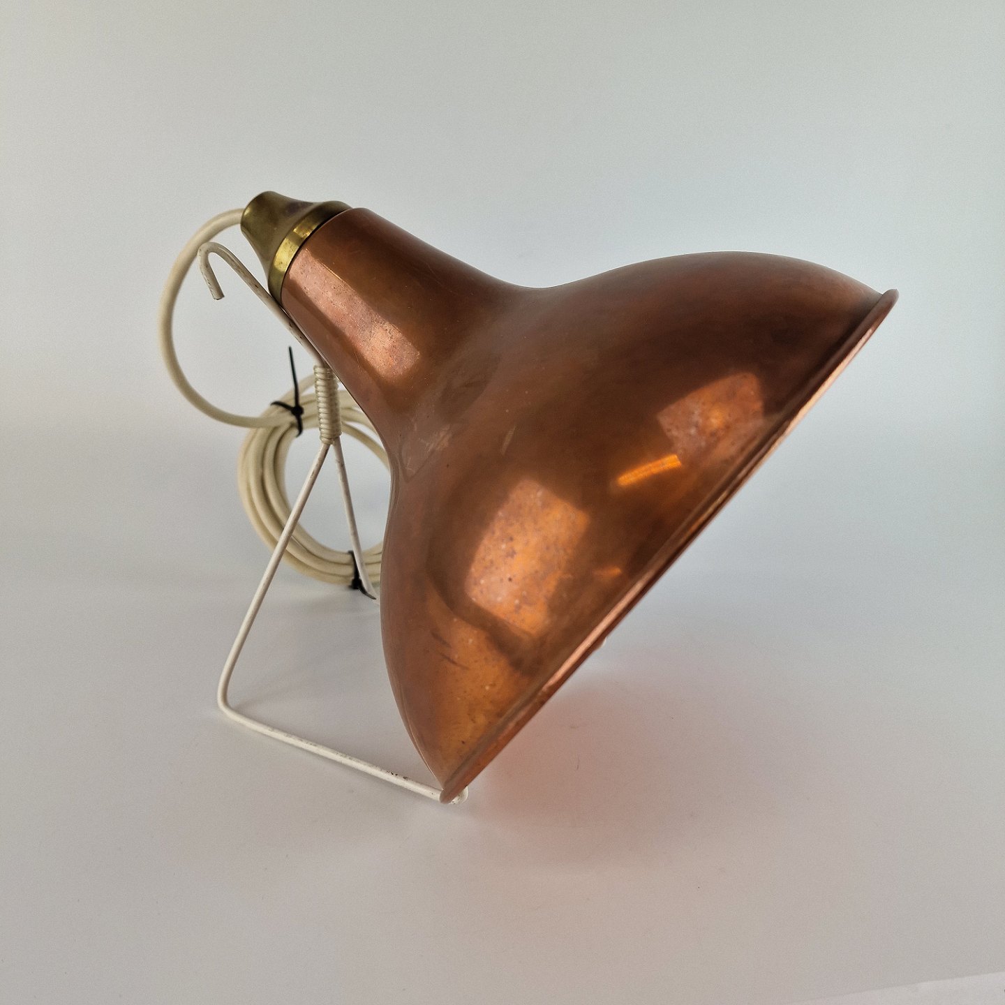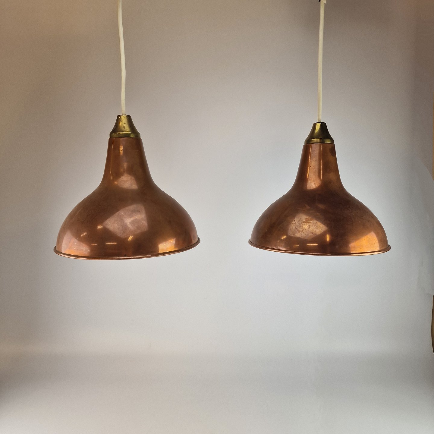 2 styks loftlamper med kobber skærme. Fatningerne er af messing