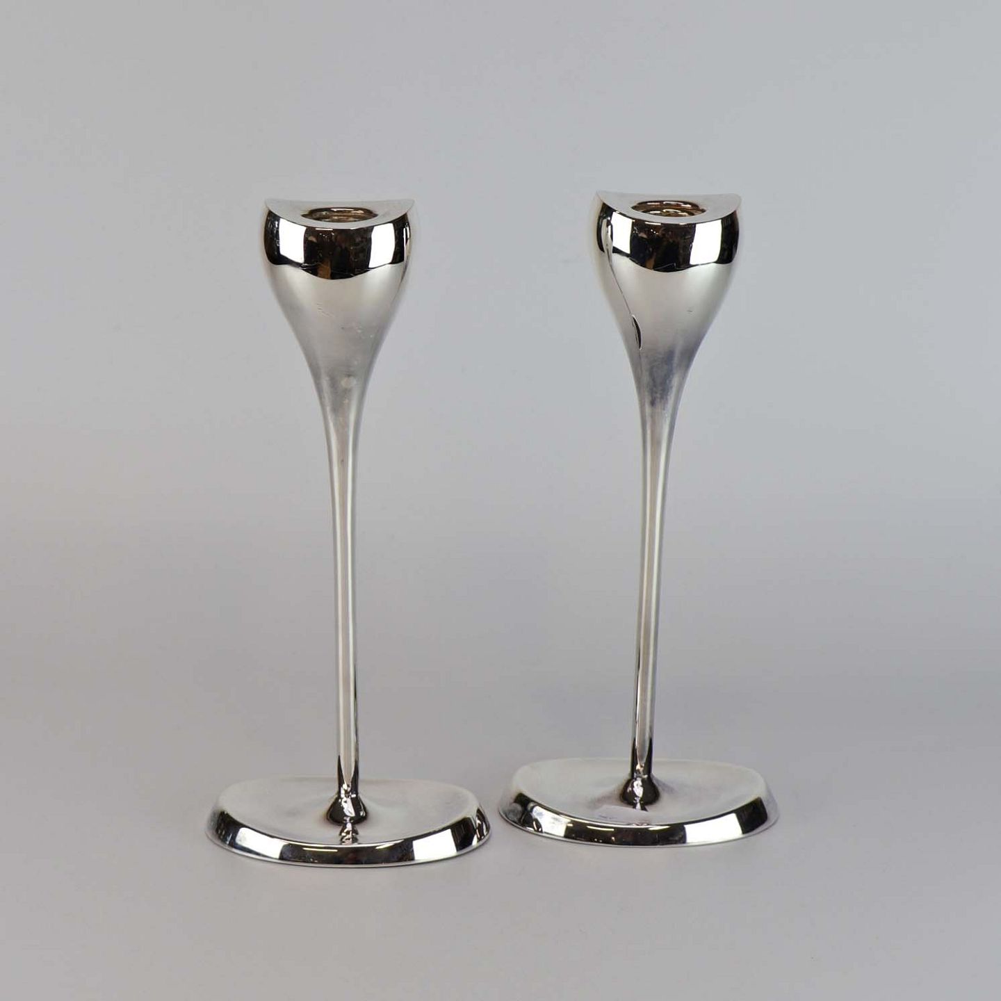Lysestager i pletsølv med oval fod