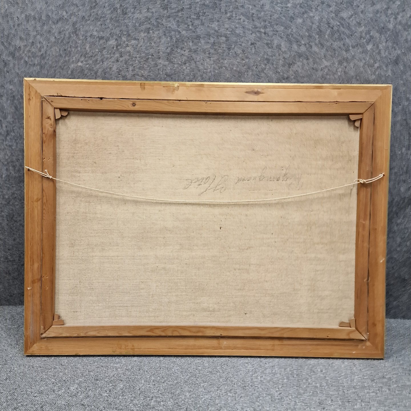 Maleri af landskab med å og bro. Titel "Lindenborg aa".