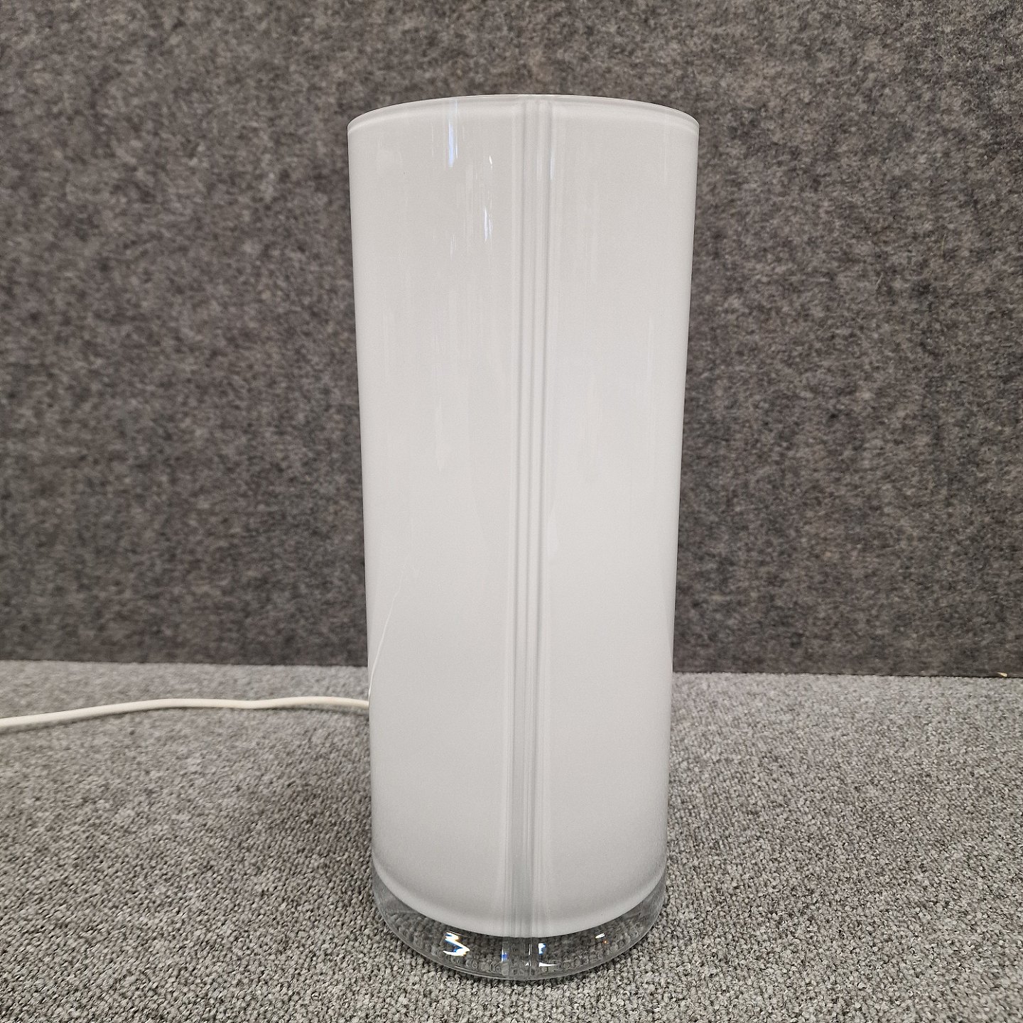 Bordlampe af mundblæst hvidt glas. Størrelse Stor og sjældent set