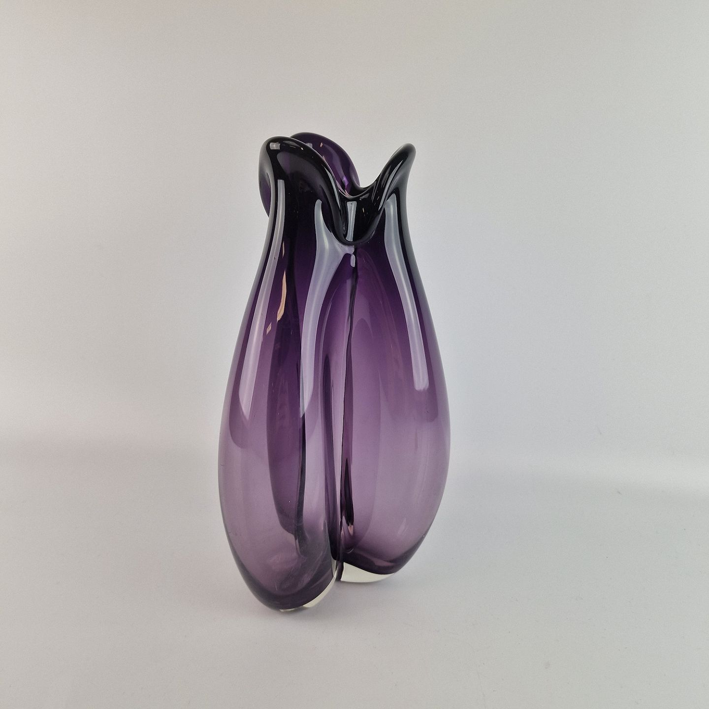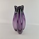 Vase af mundblæst violet glas. Formet som en trekløver set oppefra