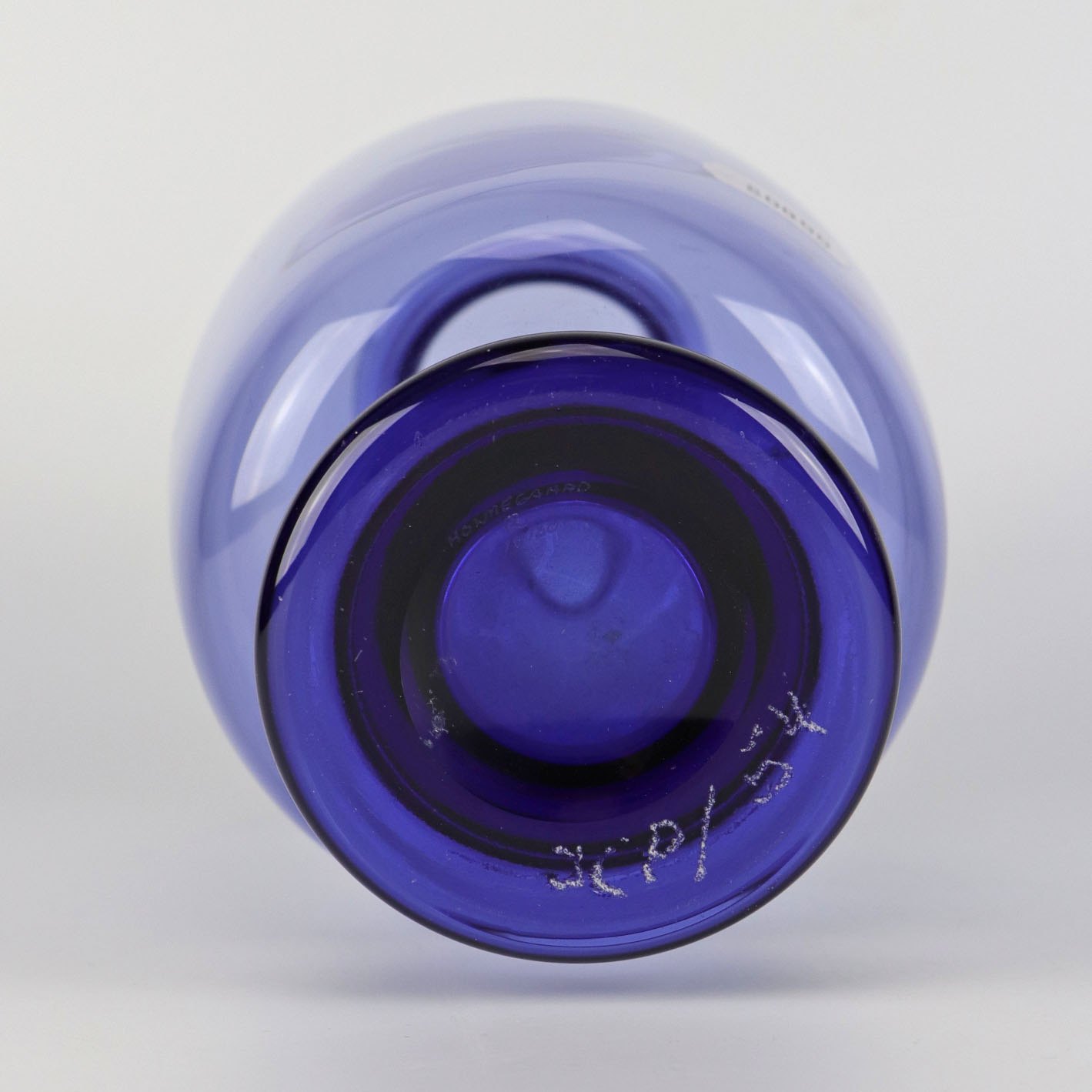 Vase i klart blå glas no 18160. Signeret under bunden.arkivfoto