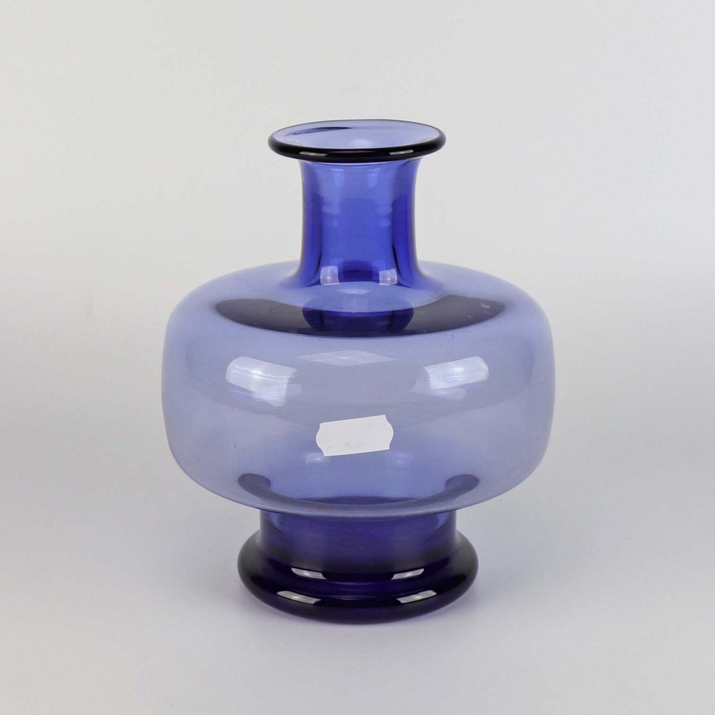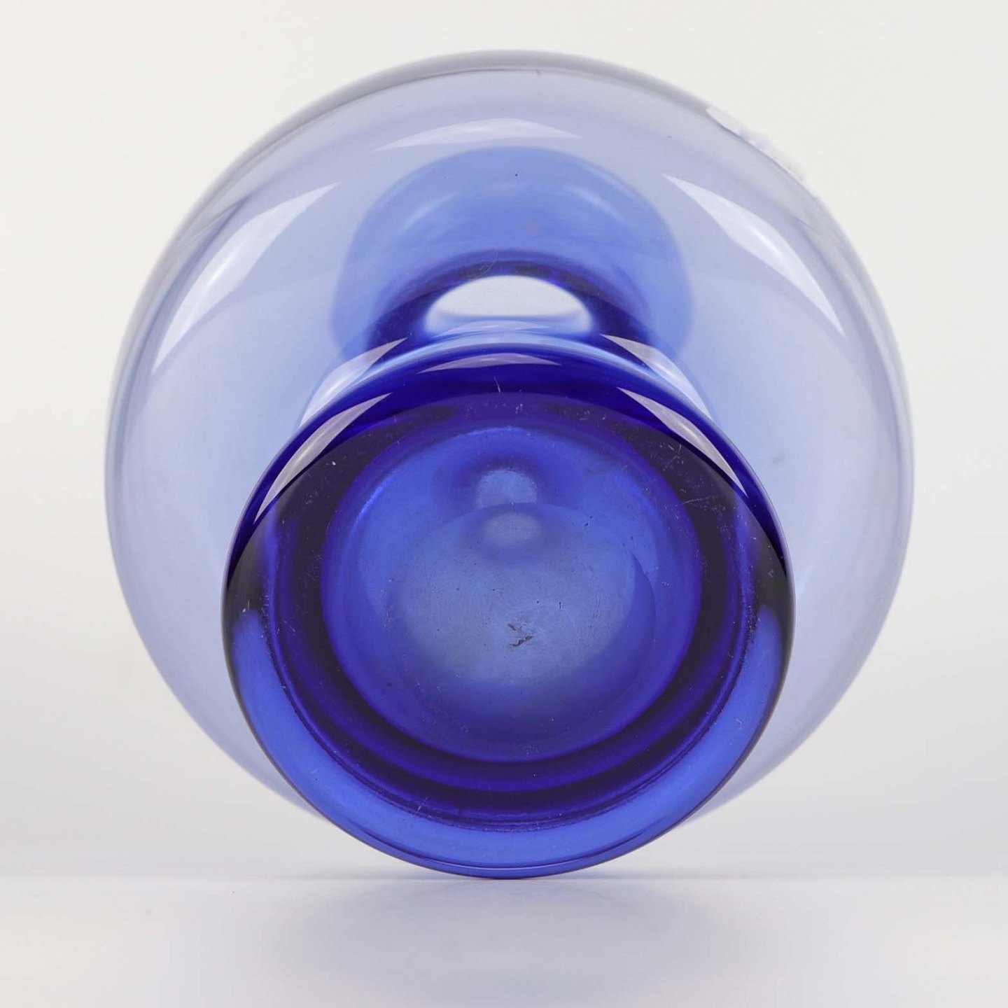 Vase i klart blå glas no 18161. Signeret under bunden.