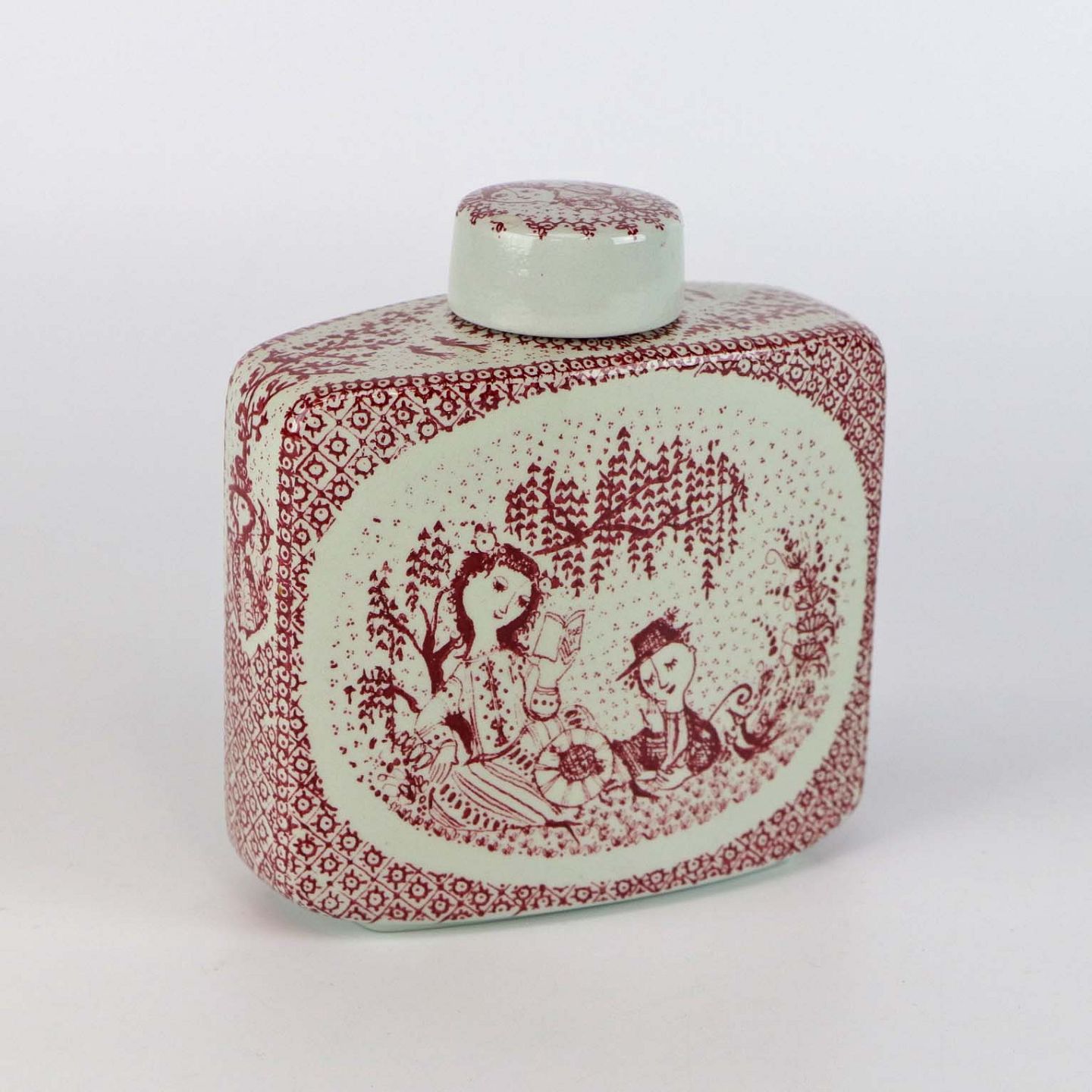 Firkantet porcelænsflaske med top i rød dekoration no 3180-302