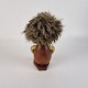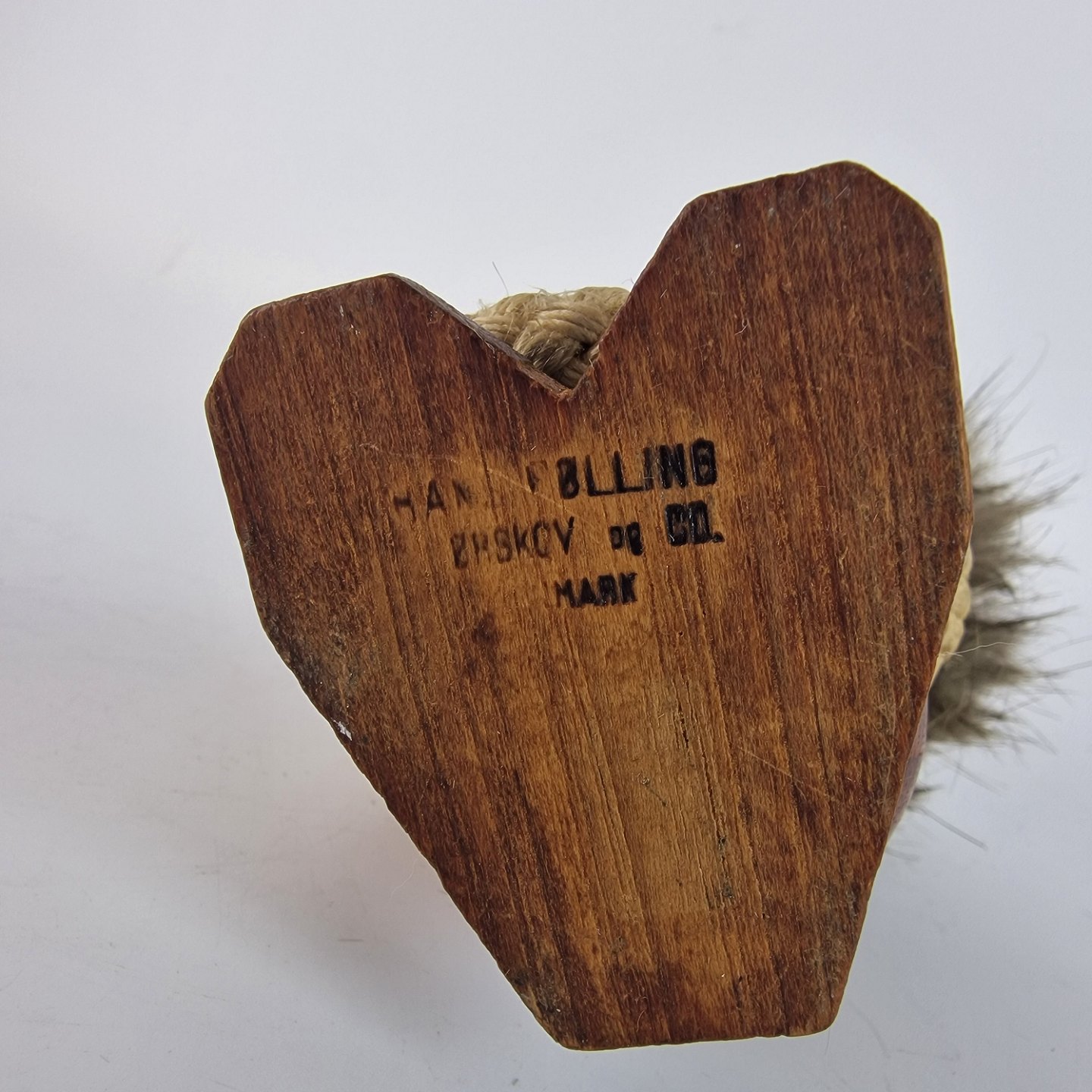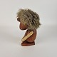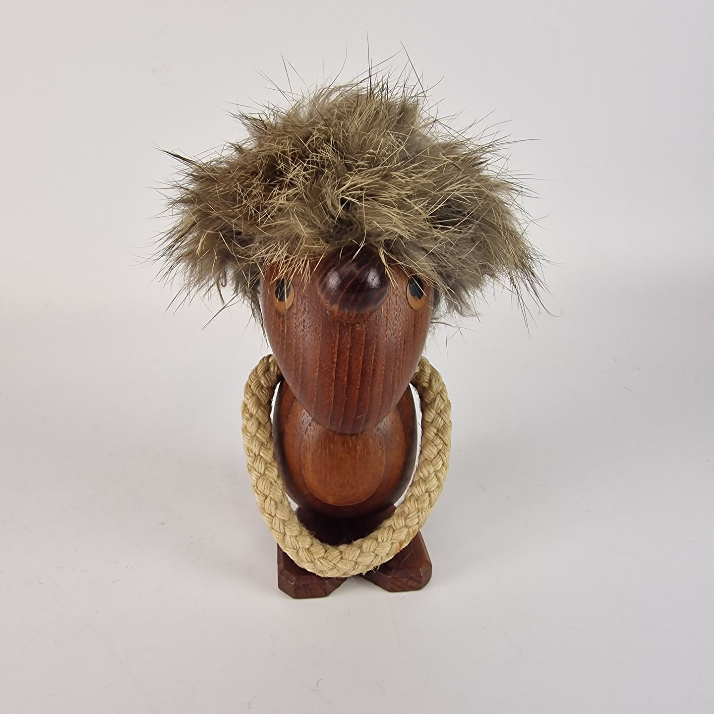 Håndskåret figur af teak, formet som en figur med hår, stor næse og reb som arme. Fra 1960'erne