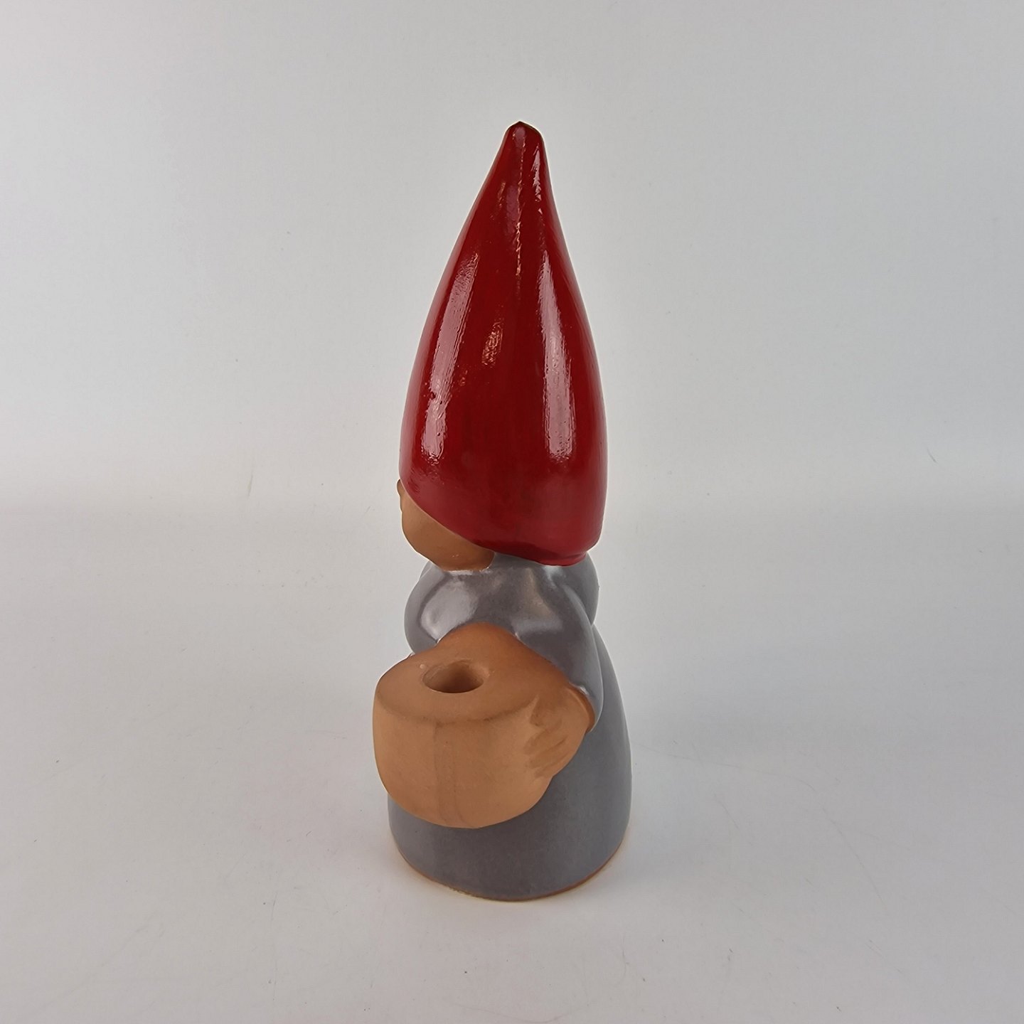 Keramikfigur af Julemandens kone med en ske og lysholder. Fra serien Santa's Family (Tomtefamilj) produceret i 1980'erne