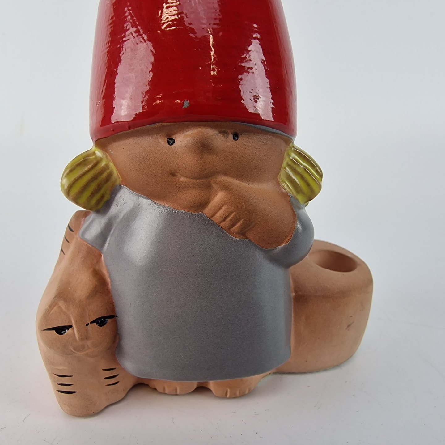Keramikfigur af en Nissepige med en kat. Fra serien Santa's Family (Tomtefamilj) designet i 1980'erne