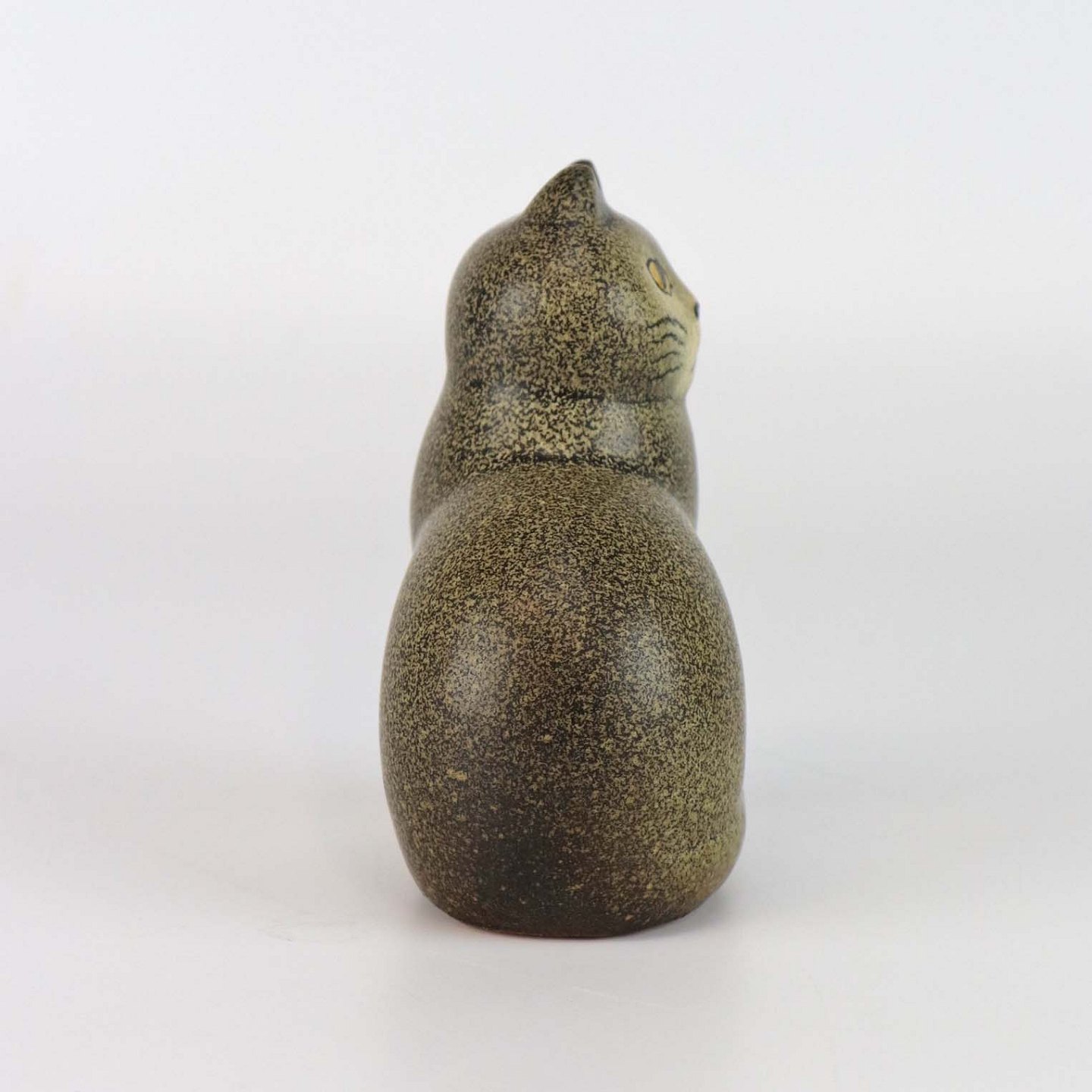 Keramikfigur af en hånddekoreret kat fra serien Mans Cat . Figuren er designet i 1984 men blev først produceret 1991