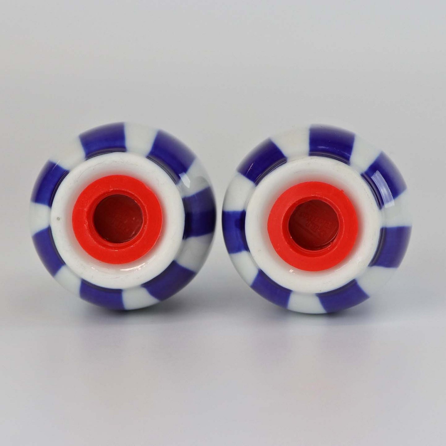 Sæt med saltbøsse og peberbøsse i porcelæn fra stellet blå striber