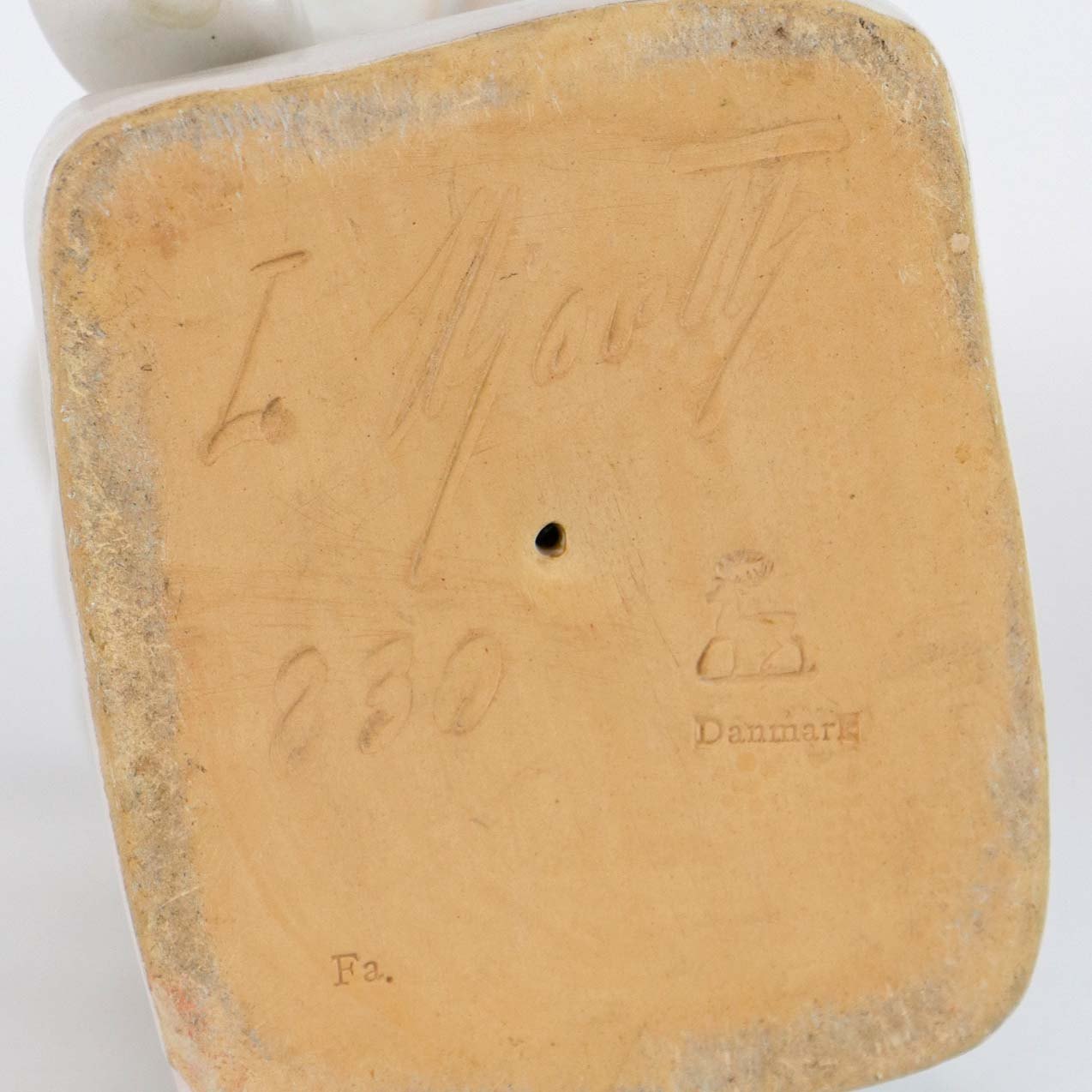 Figur i hvidglaseret keramik med motiv af nøgen ung sørgende kvinde nr 830
