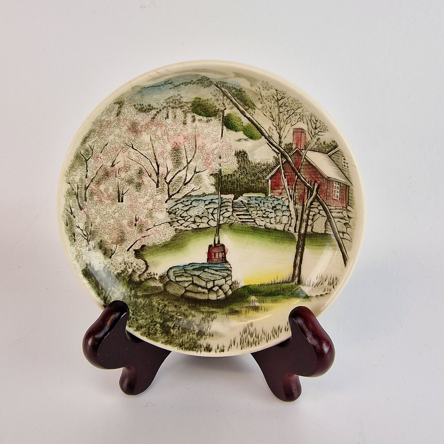 Asiet fra stellet The Friendly Village. Motiv af en brønd og hus