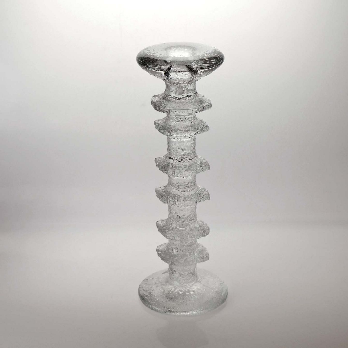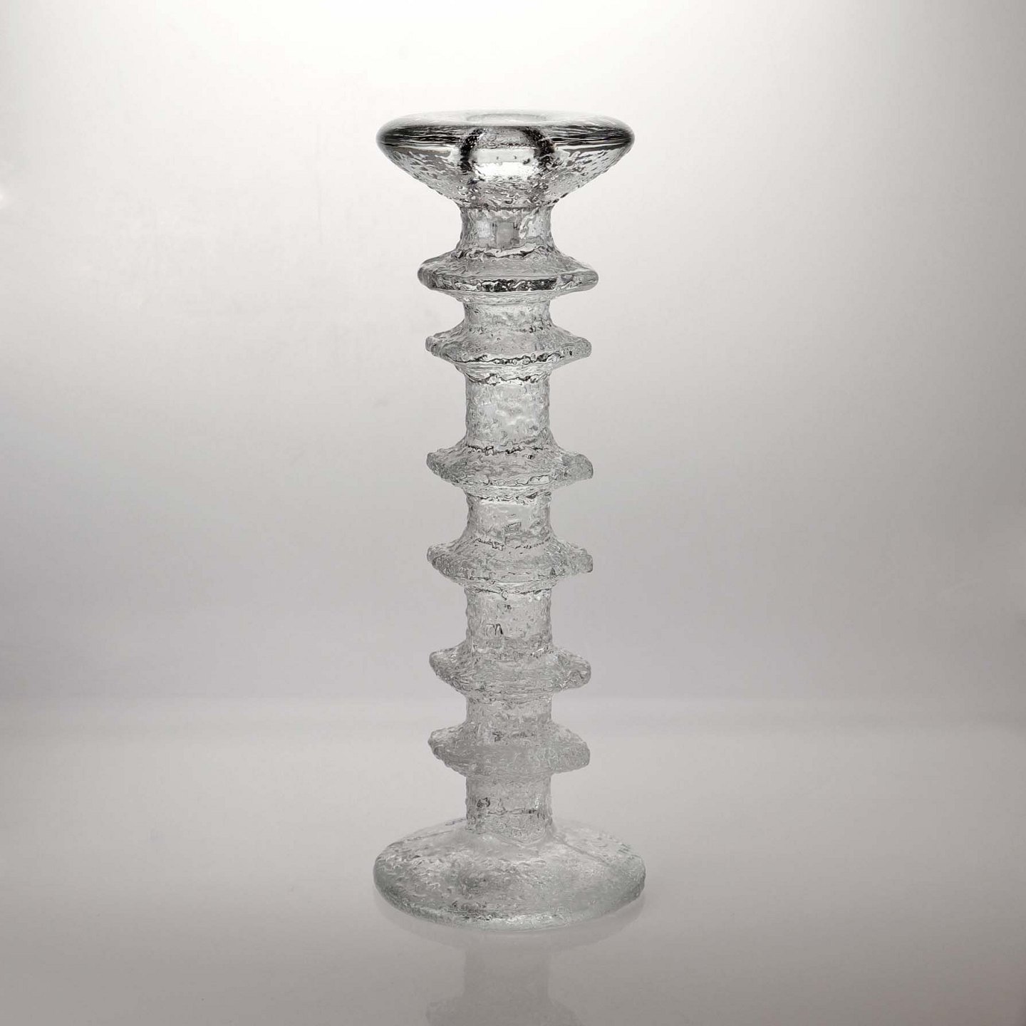 Stor Festivo lysestage i klart struktureret glas med seks ringe.