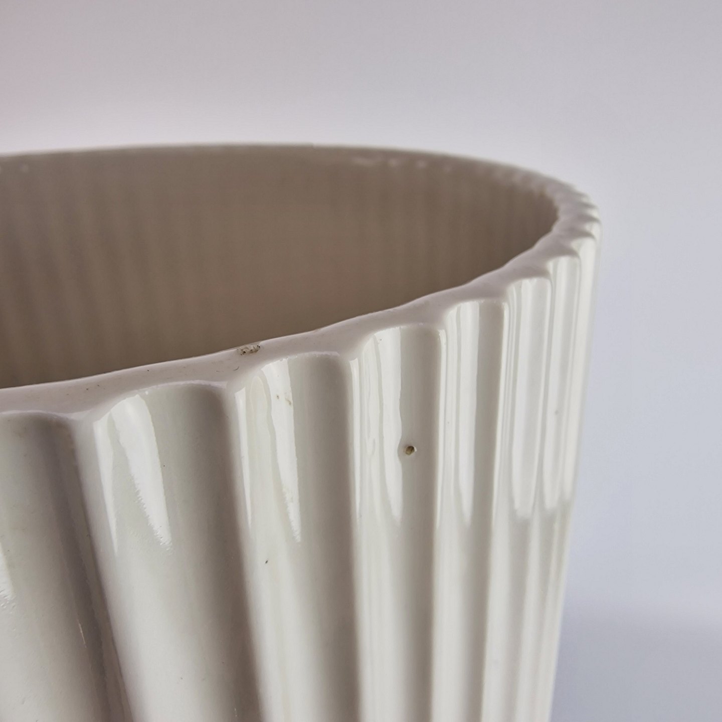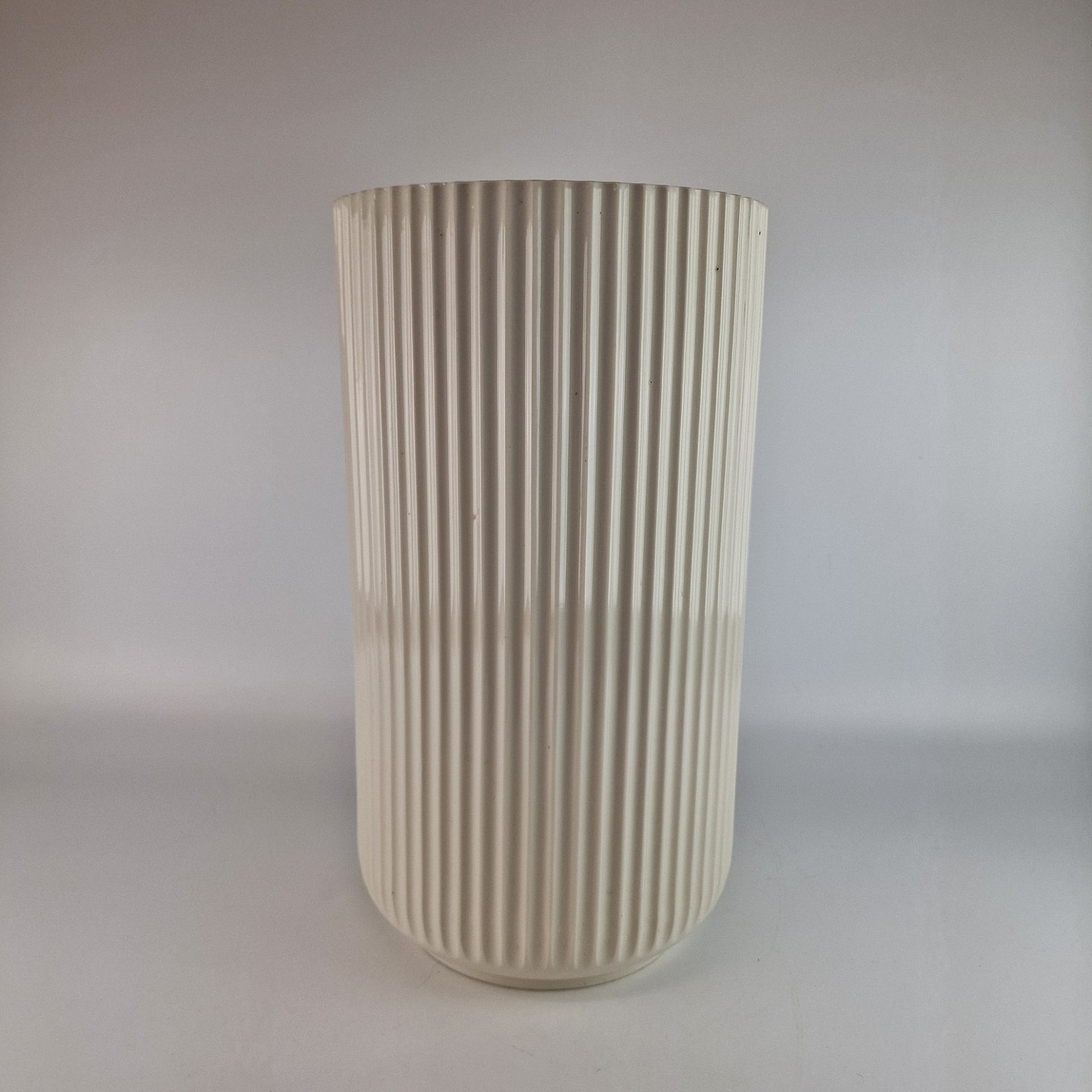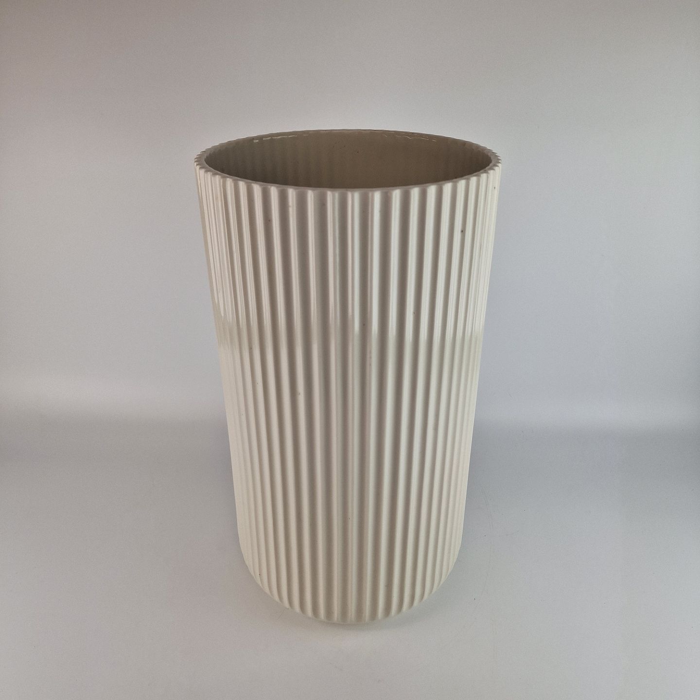 Rund og riflet vase i hvid porcelæn