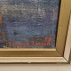 Oliemaleri på lærred med motiv af mand ved sejlbåde på land