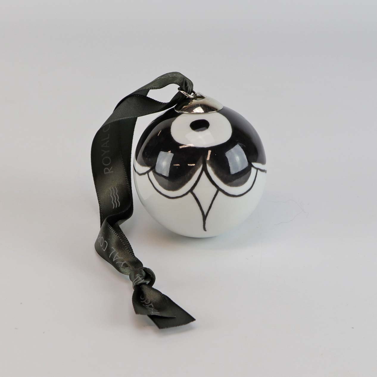 Kongelig juleornament til ophæng i glat porcelæn fra serien Sort Mega mussel Riflet