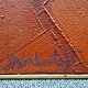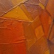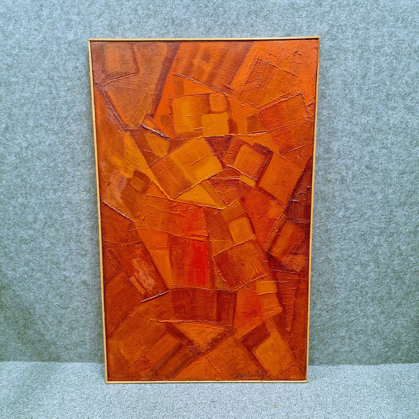 Oliemaling på plade med abstrakt motiv i orange og røde farver