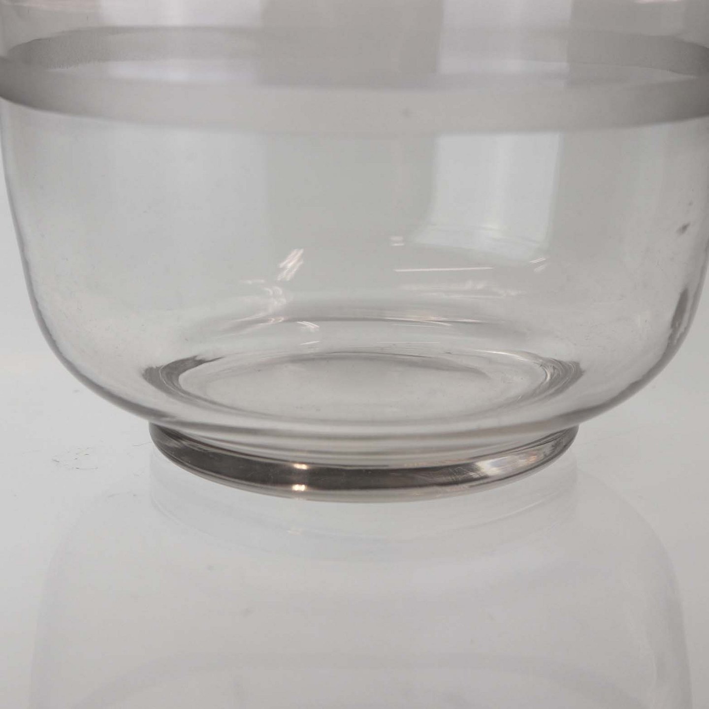 Sukkerkumme i klart glas, samt dekoreret med slebet bånd. Fra start 1900 tallet