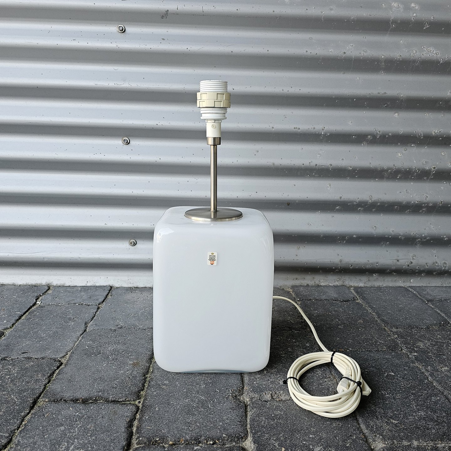 Opal hvid lampe med kvadratisk fod