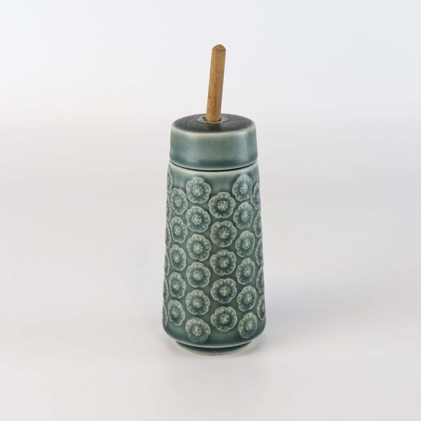 Stellet Azur er med blå/grøn glasering og dekoreret med små blomster.