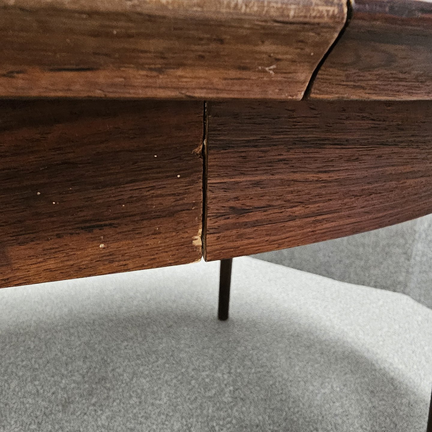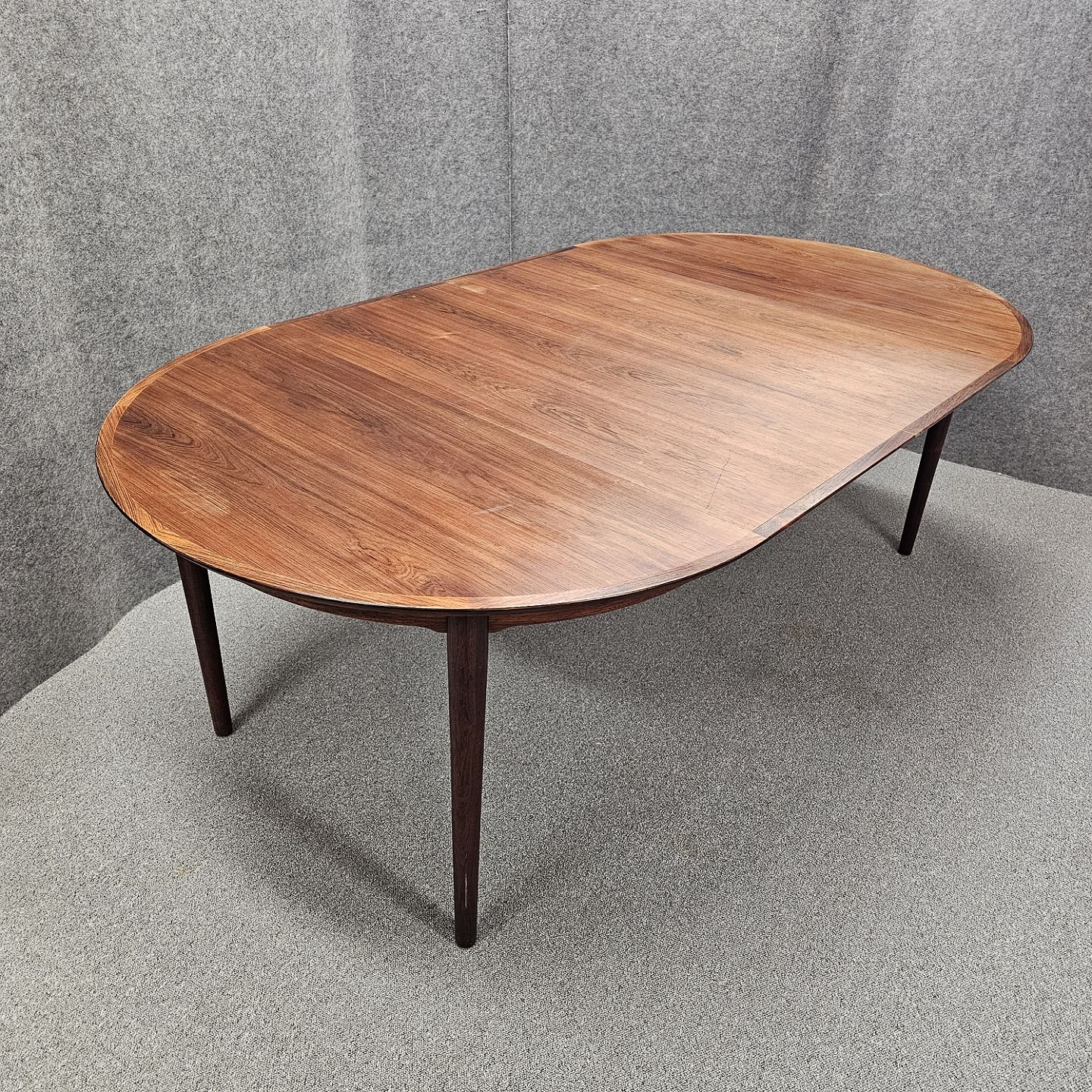 Rundt spisebord i lakeret palisander med to tillægsplader.