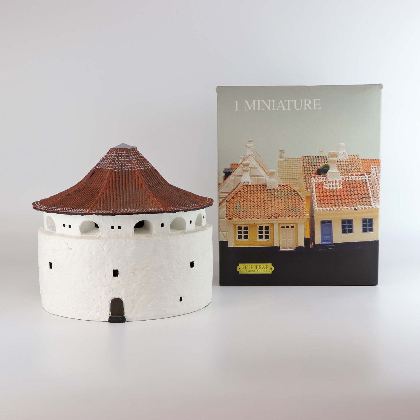Miniature model i boks af Krudttårnet i Frederikshavn model 54.1