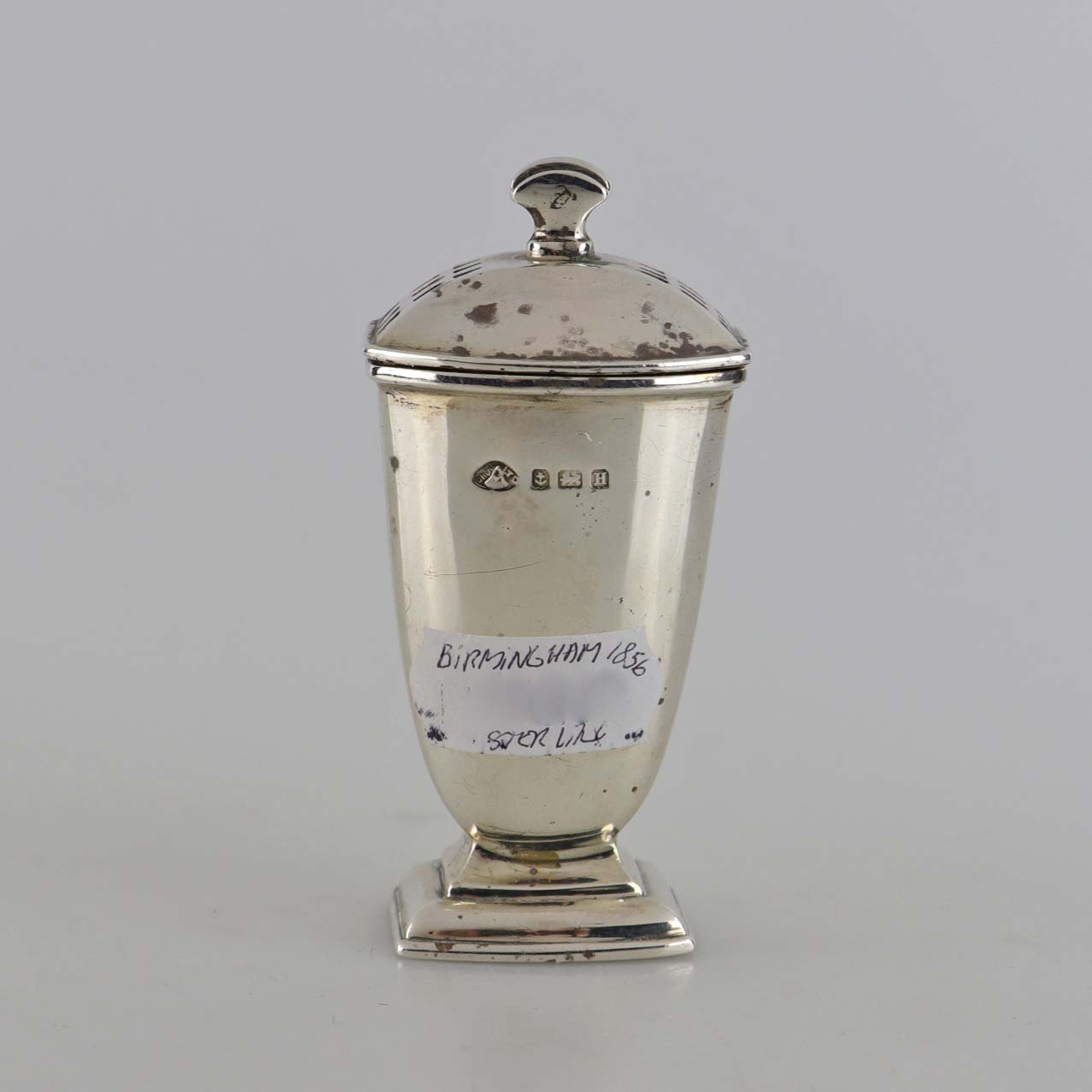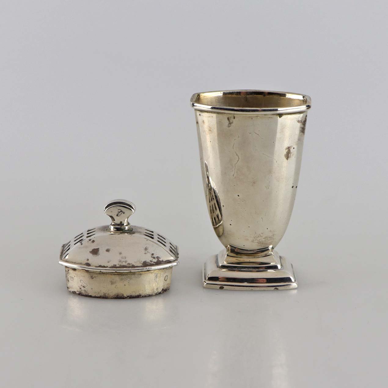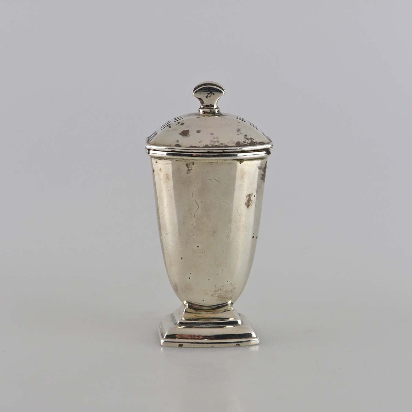 Antik engelsk hovedvandsæg på fod i sterling sølv med aftagelig top.