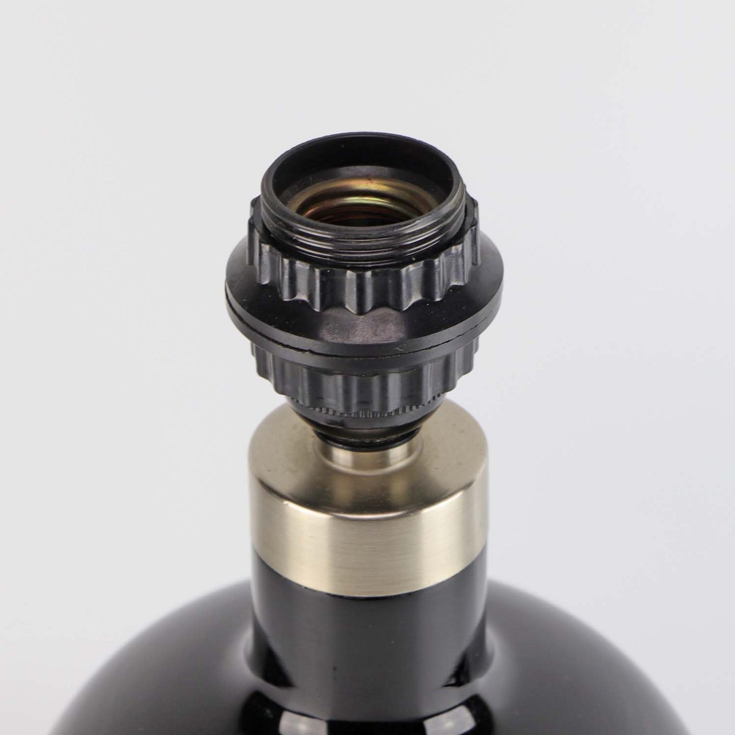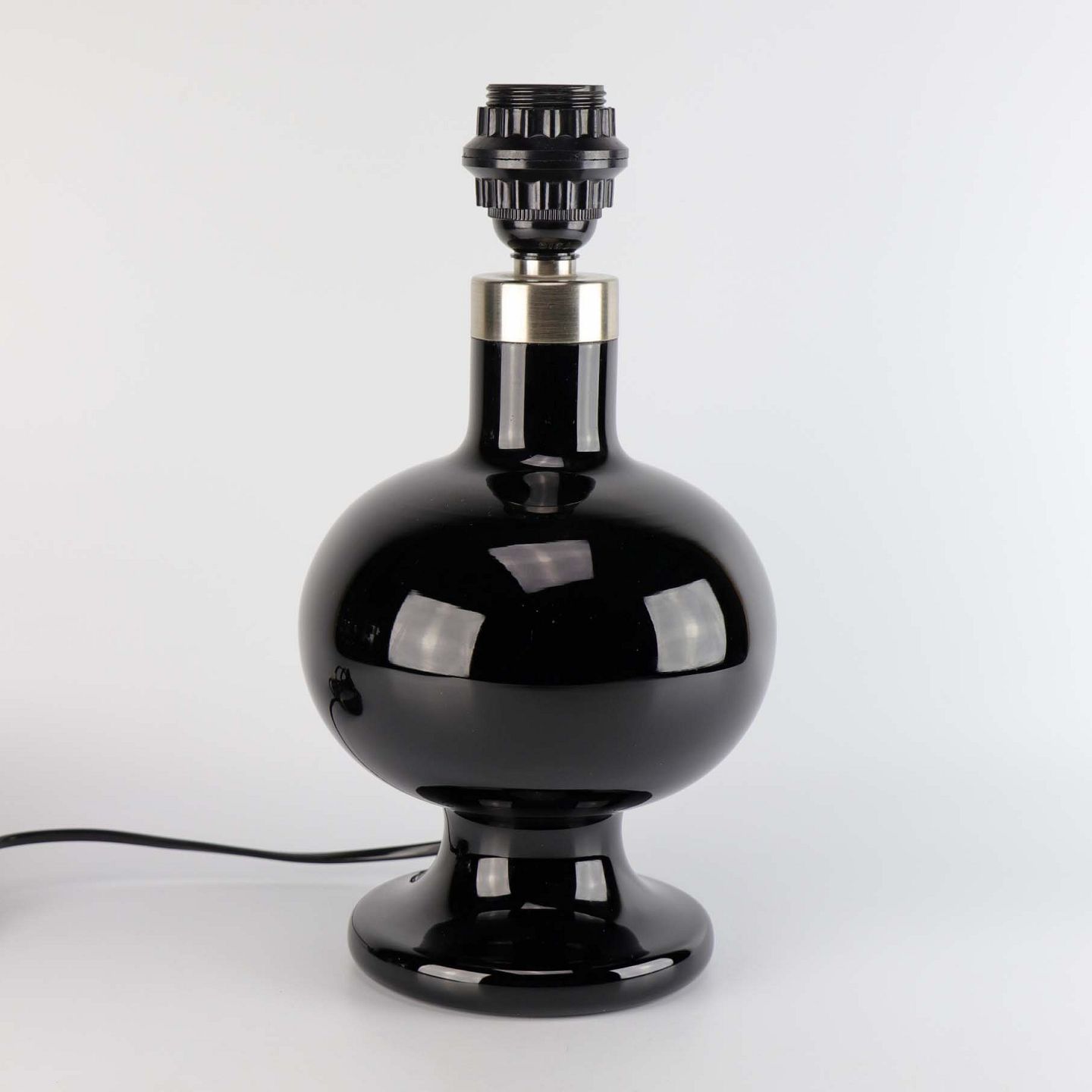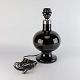 Bordlampe i mundblæst sort glas. Sort ledning og sort fatning
