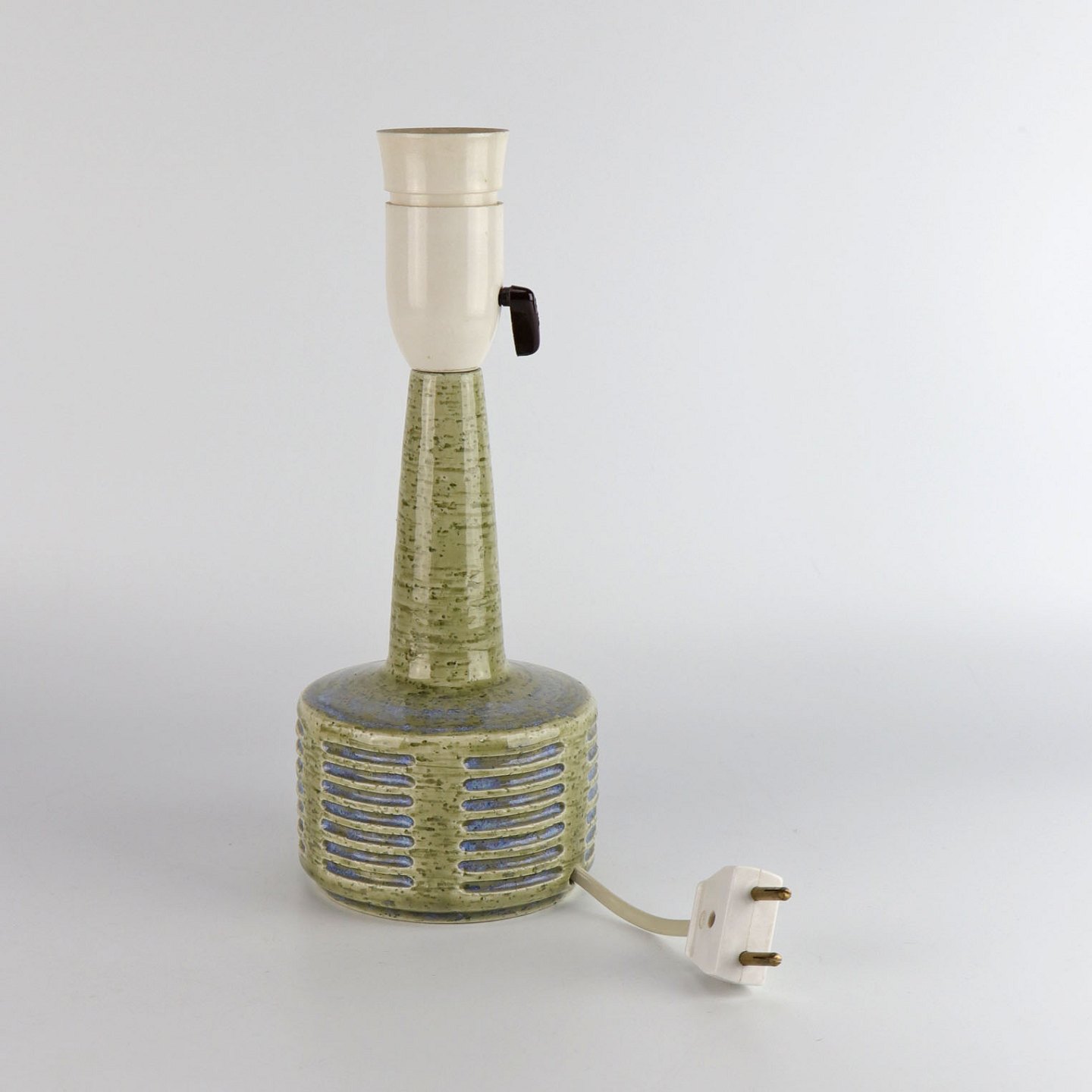 Bordlampe i stentøj med rifler samt grøn og blå glasur. Nr. 30
