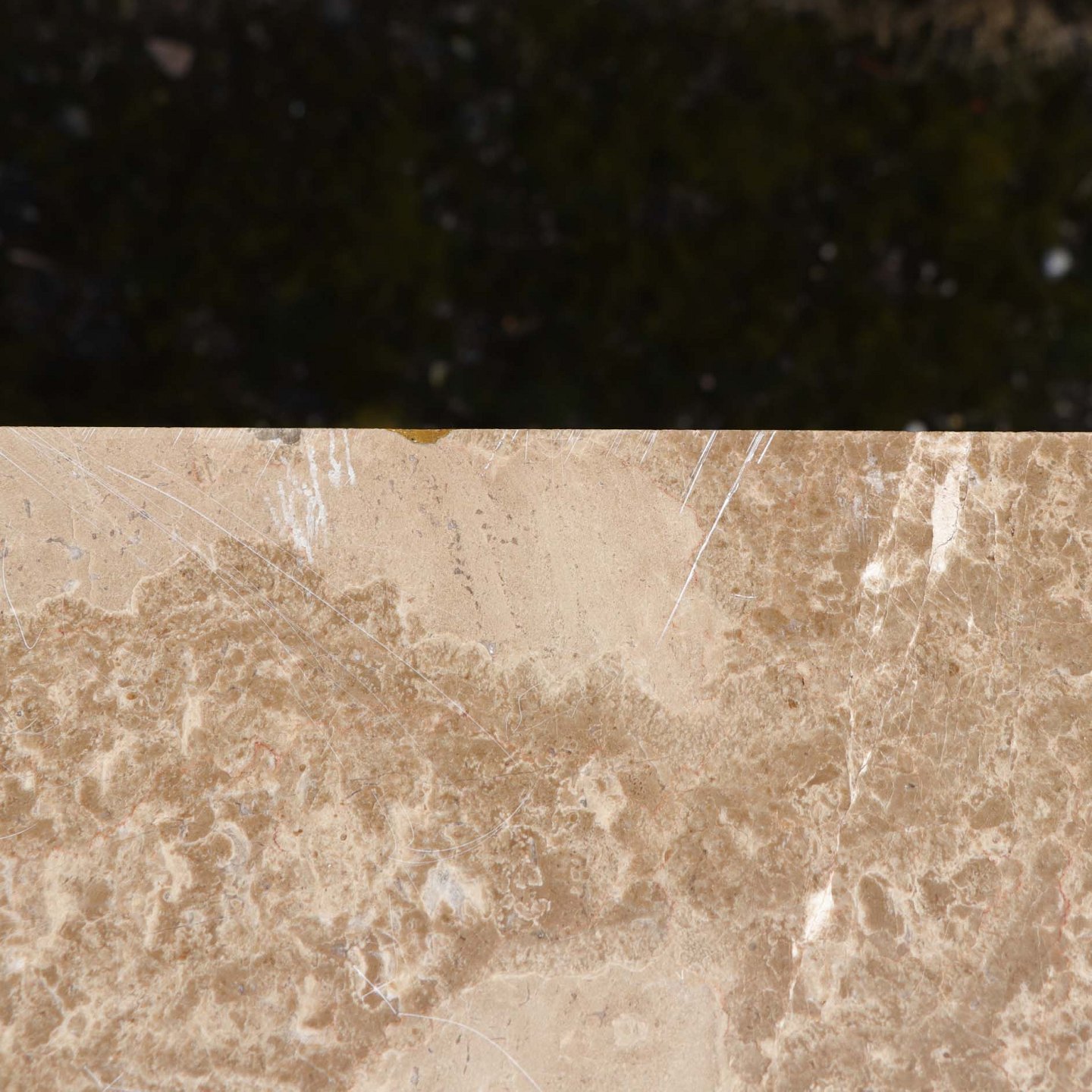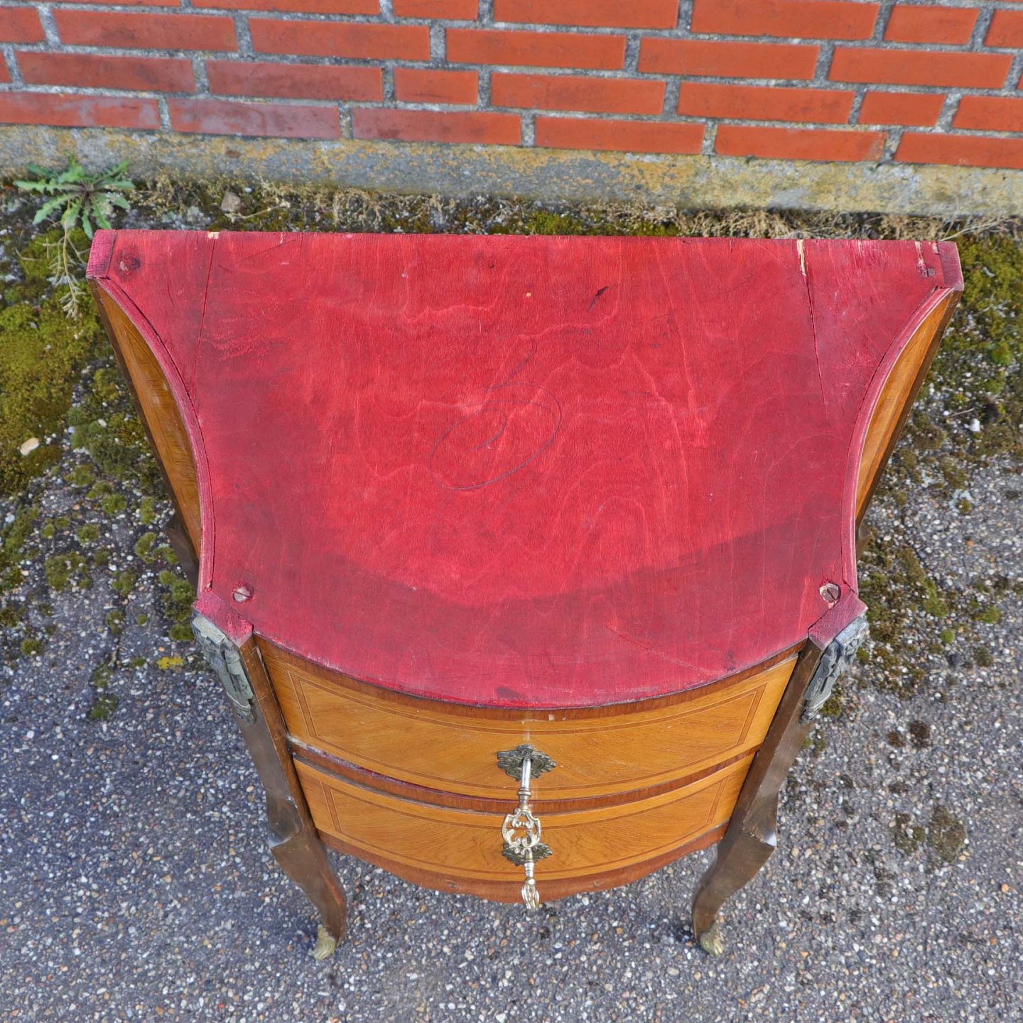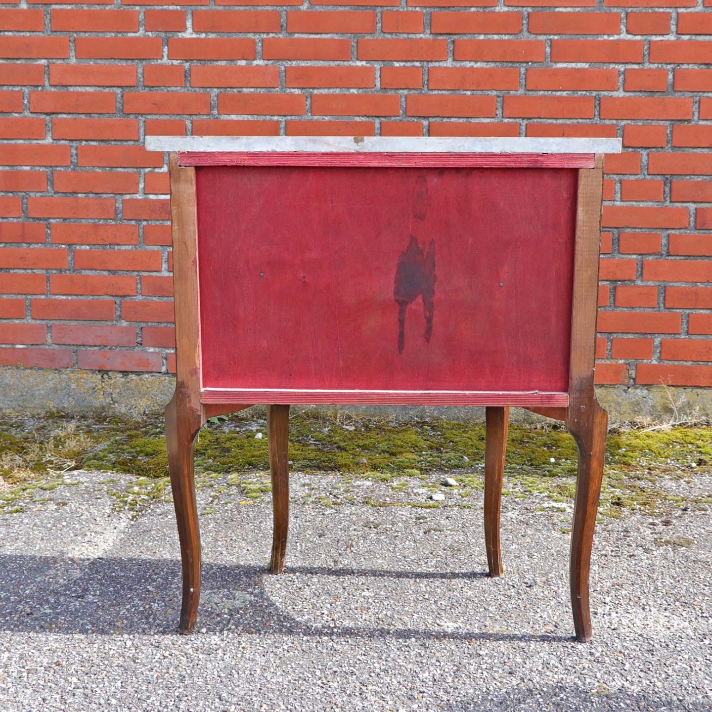 Fremstår med brugsspor på pladen, en revne i træet under toppladen samt enkelte afslag i træet på frontsiden