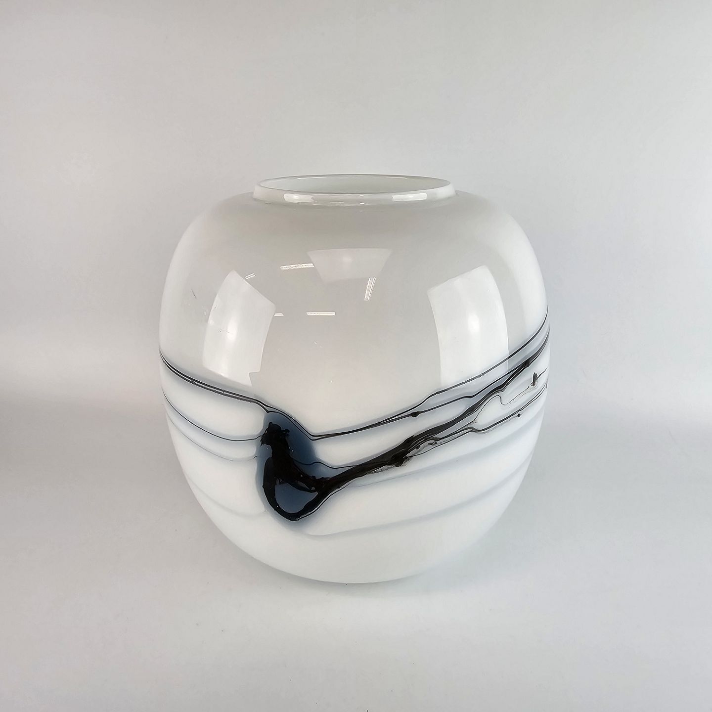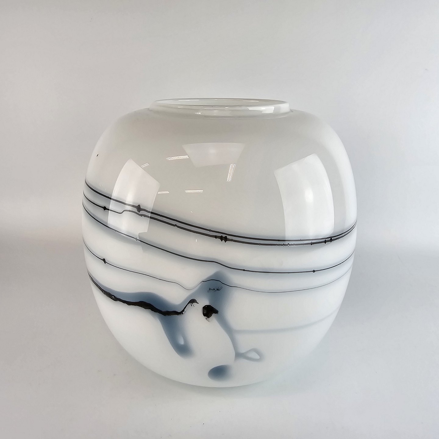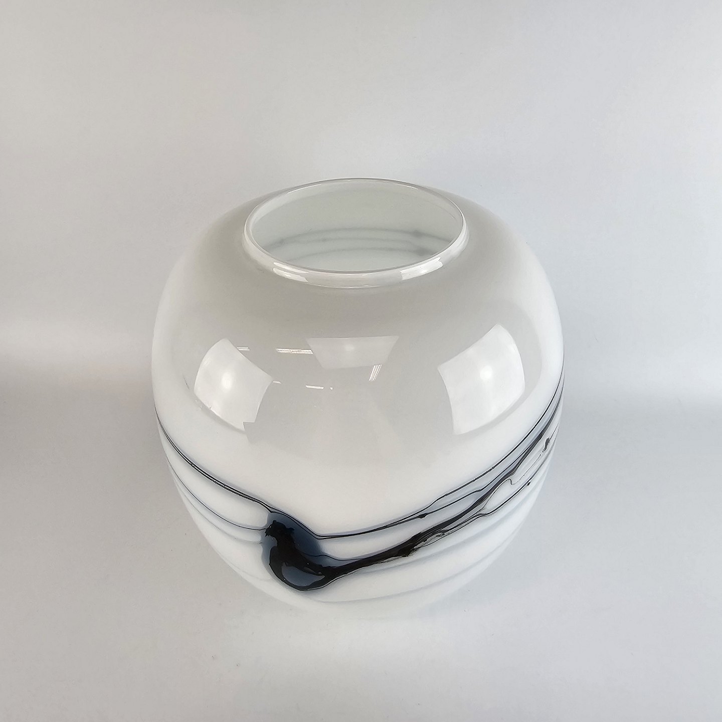 Atlantis er opal hvidt glas med striber trukket ud over midten, så det danner forskellige tykkelser og former i blå nuancer