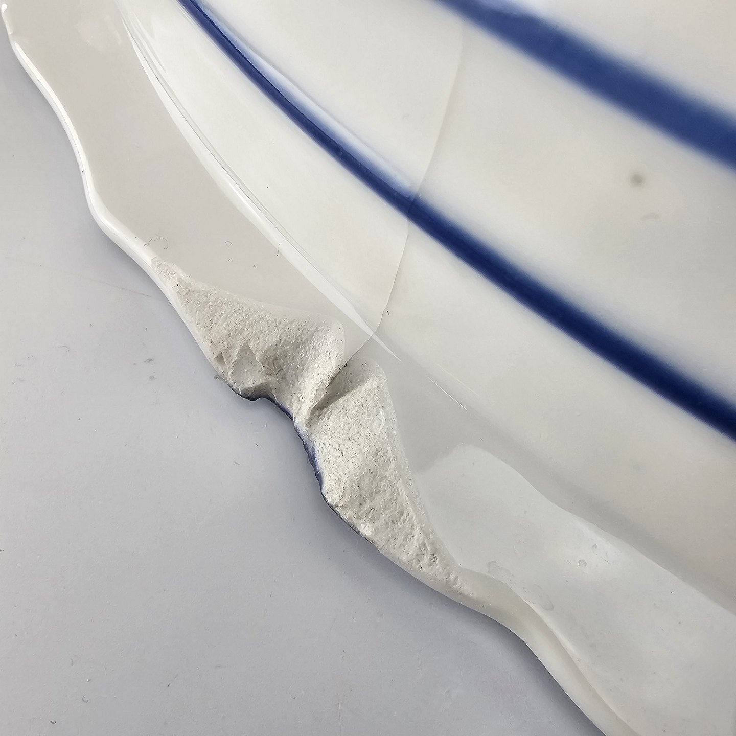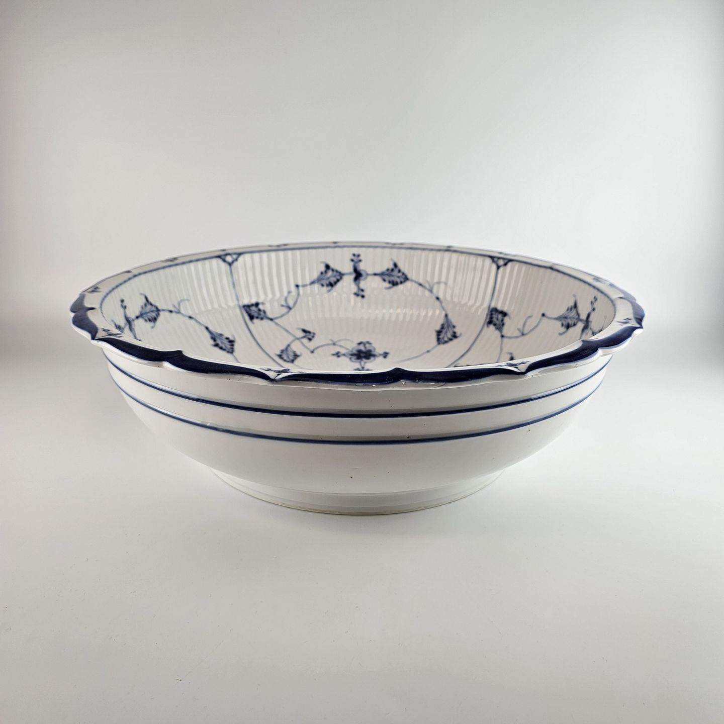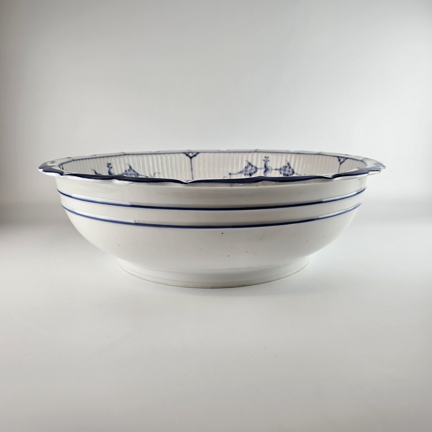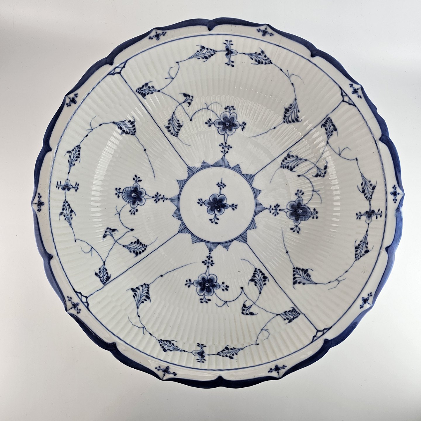 Stor meget sjælden kongelig servanteskål i riflet Musselmalet.