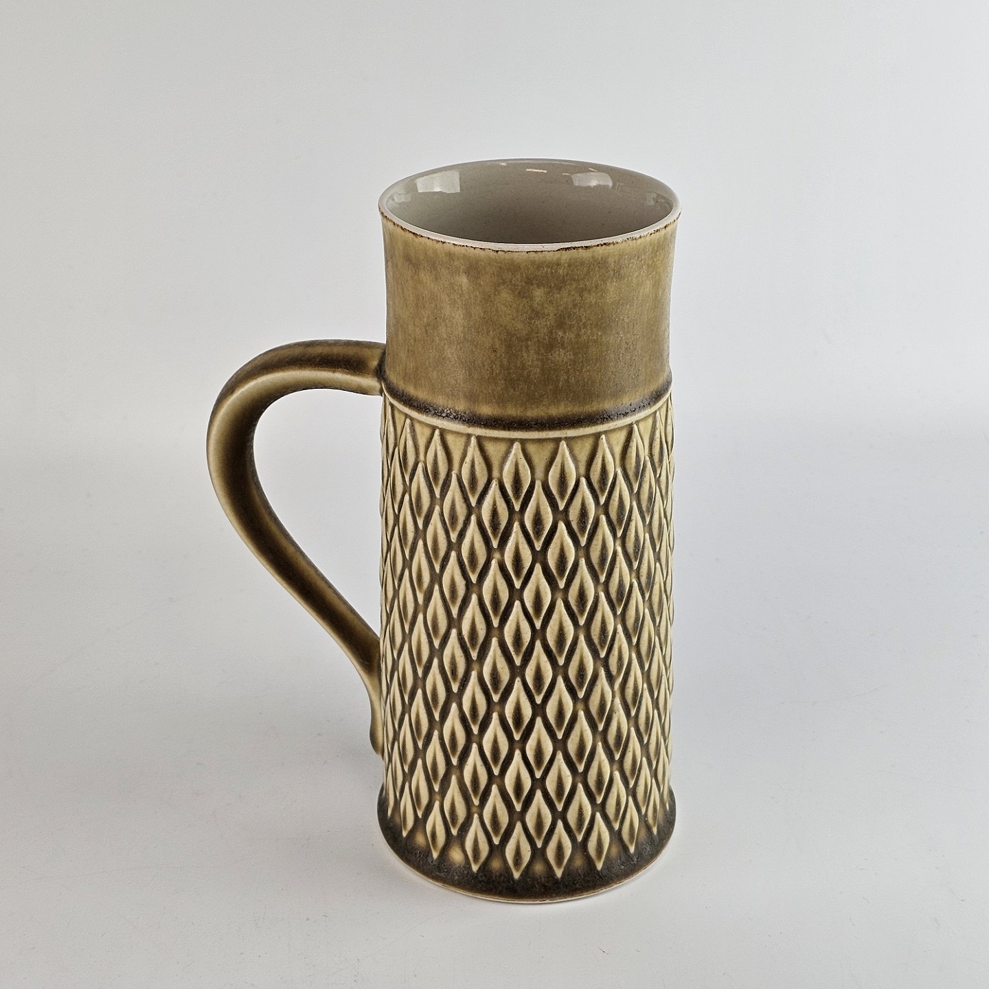 Kronjyden, stort krus i gulbrun farve, som relief