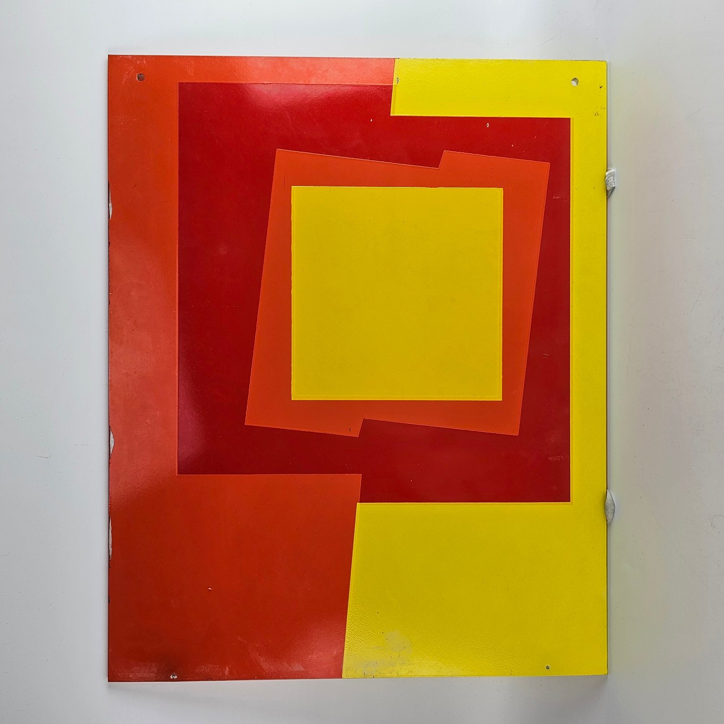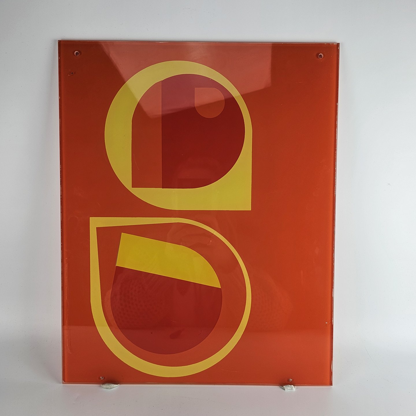 3-delt glas komposition i farverne rød, gul, blå og sort