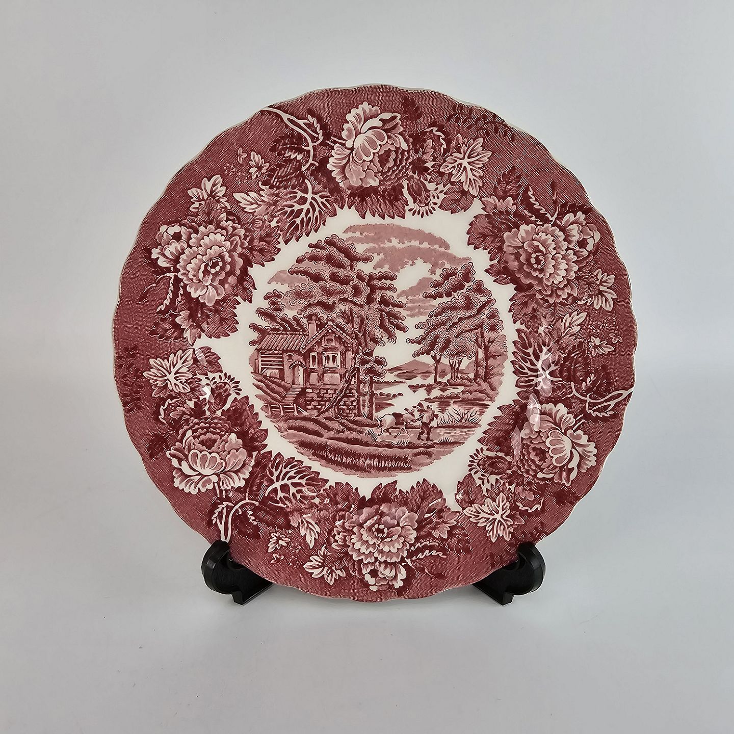 Tallerken fra det engelske stel Rød Paris (Enoch wood's, English scenery)