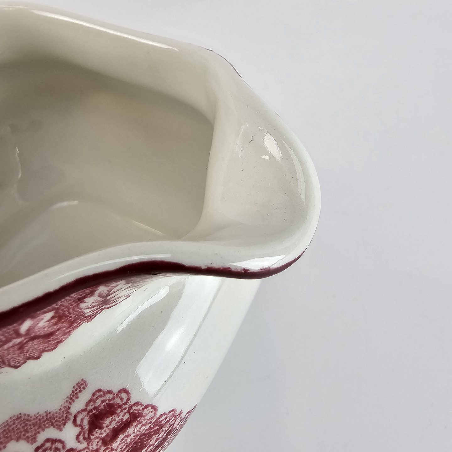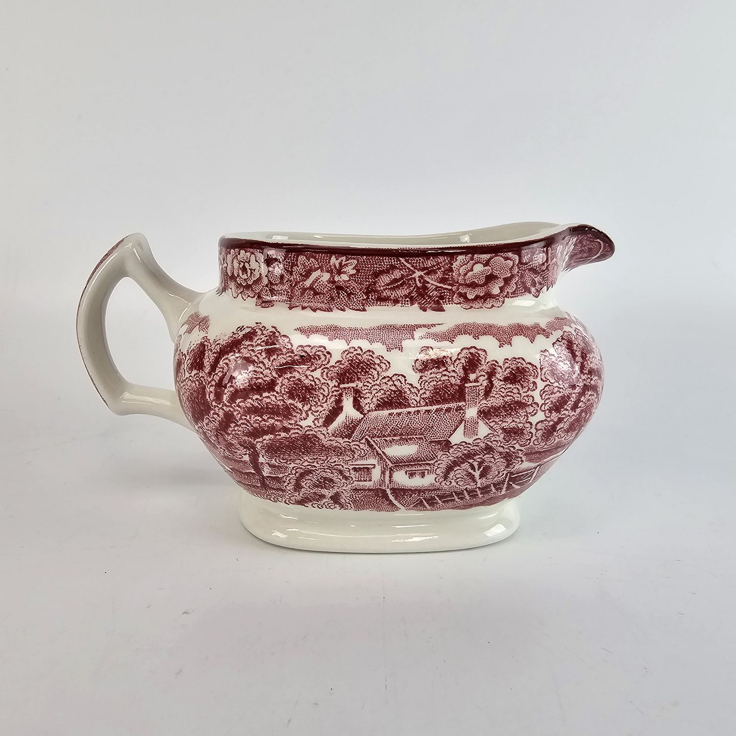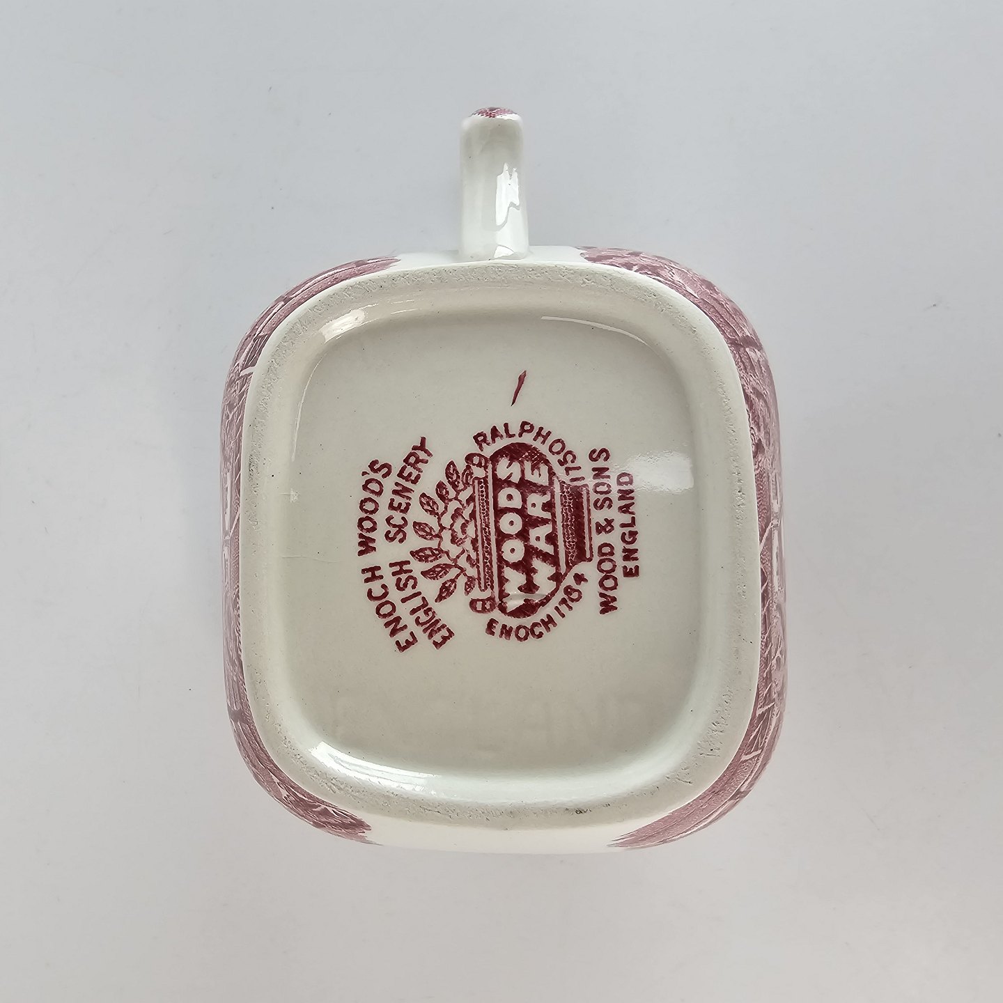 Kvadratisk flødekande fra det engelske stel Rød Paris (Enoch wood's, English scenery)