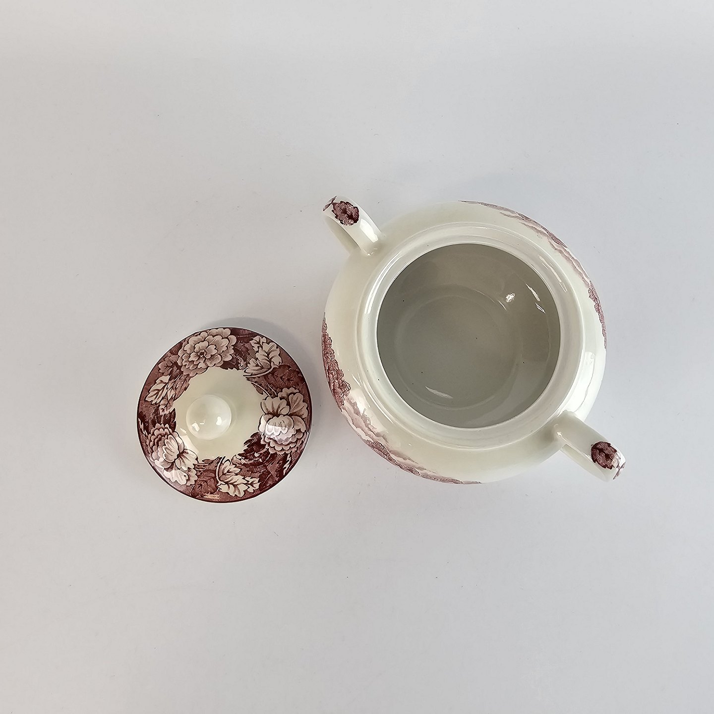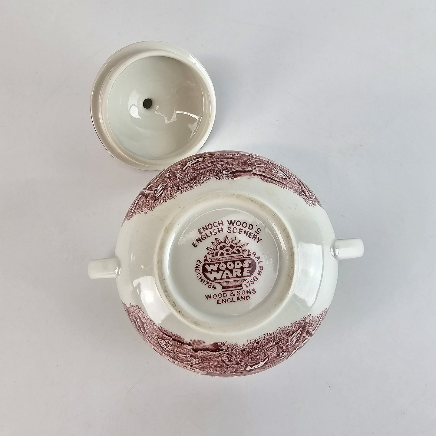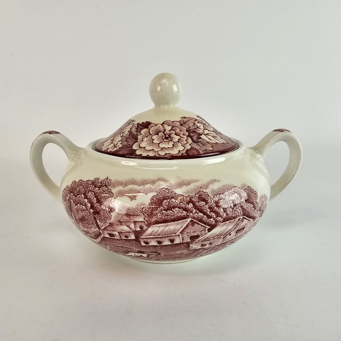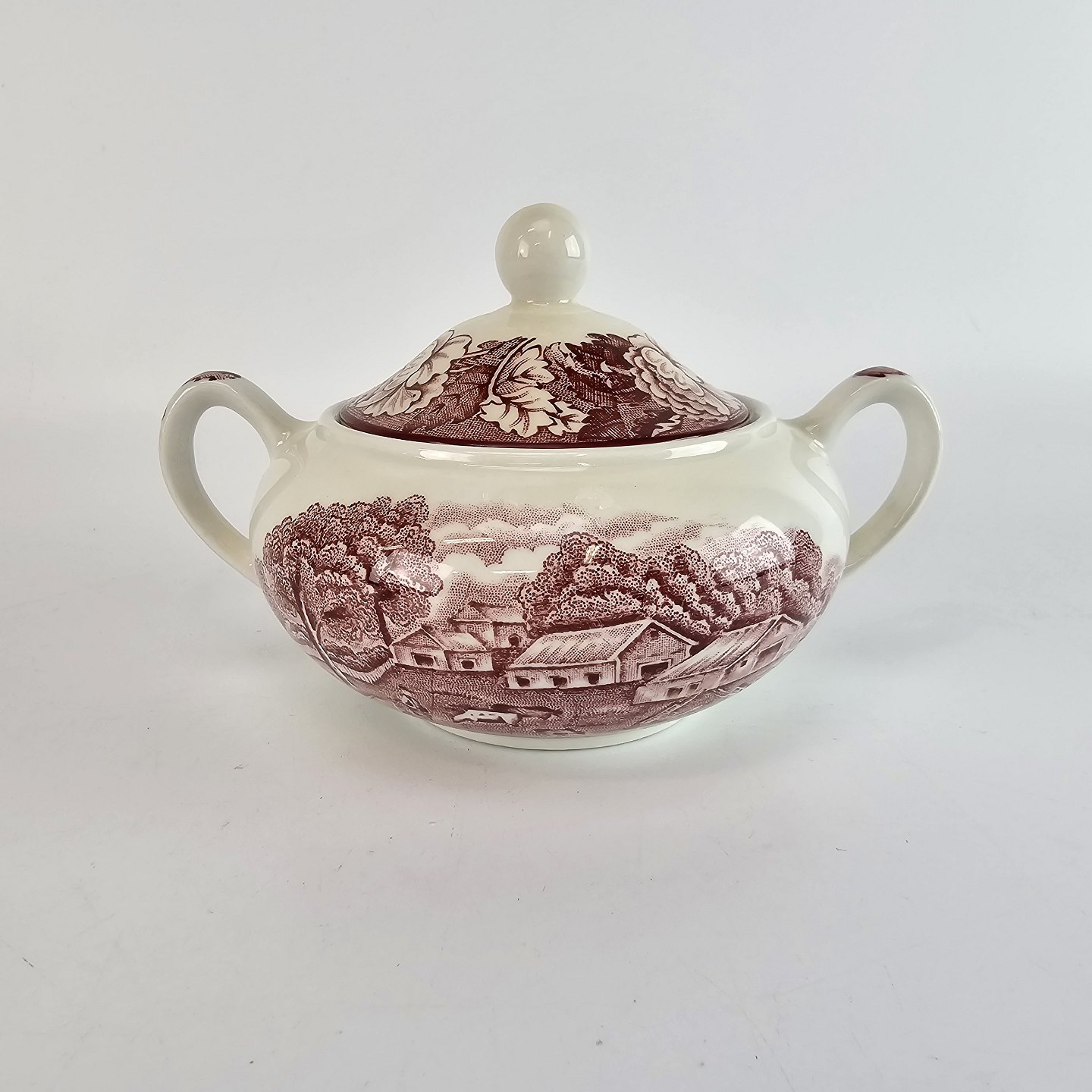 Sukkerskål med låg fra det engelske stel Rød Paris (Enoch wood's, English scenery)