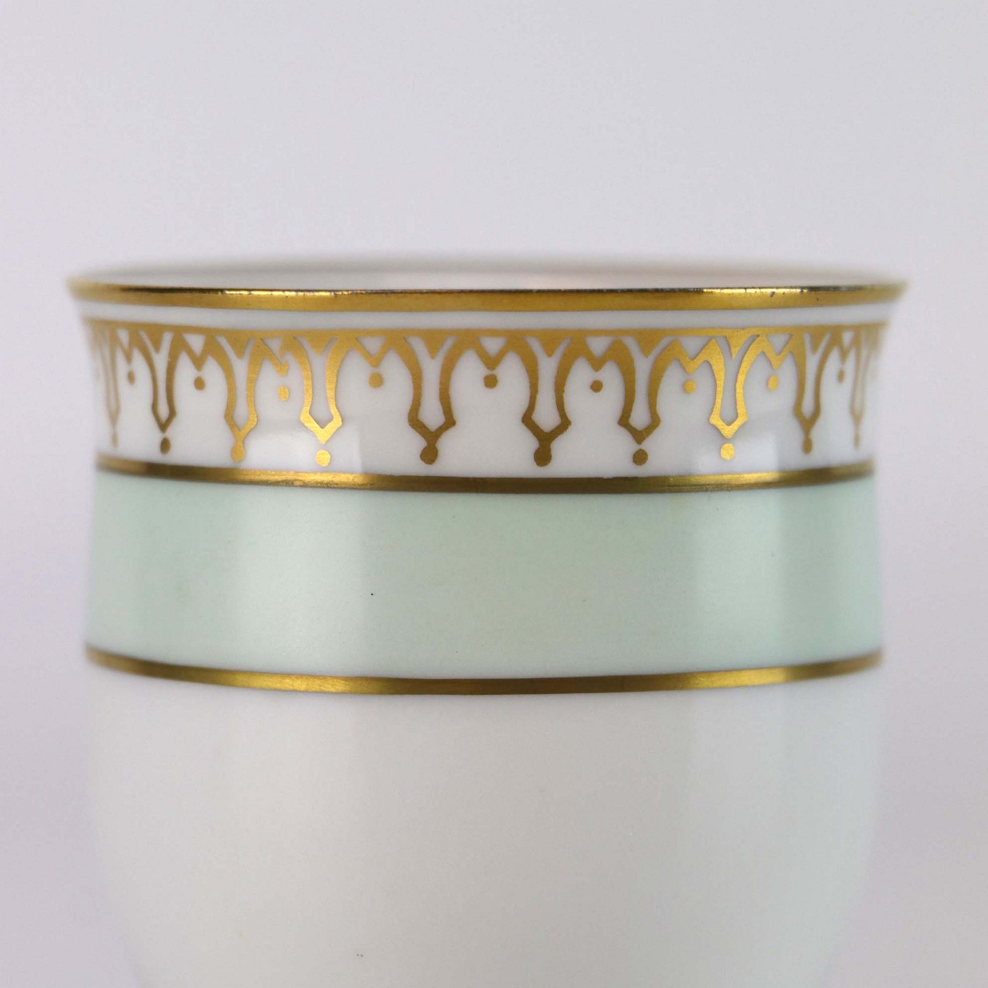 Service i glat hvidt porcelæn med lysgrøn bord og forgyldt dekoration