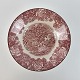 Rød Paris er af engelsk fajance dekoreret med forskellige landskaber og blomster i kanten, alt i forskellige røde nuancer