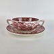 Rød Paris er af engelsk fajance dekoreret med forskellige landskaber og blomster i kanten, alt i forskellige røde nuancer
