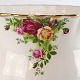 Service i glat hvidt porcelæn med motiv af farverige roser. Topkanten har en let bølget form belagt med gylden dekoration.