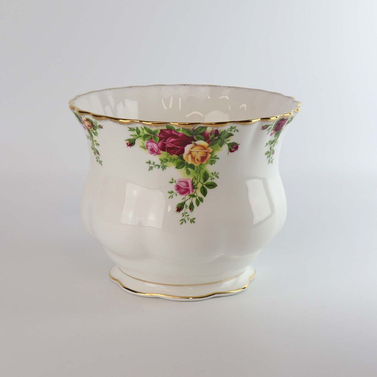 Urtepotteskjuler i porcelæn fra det engelske stel Old country roses. Landsbyrose