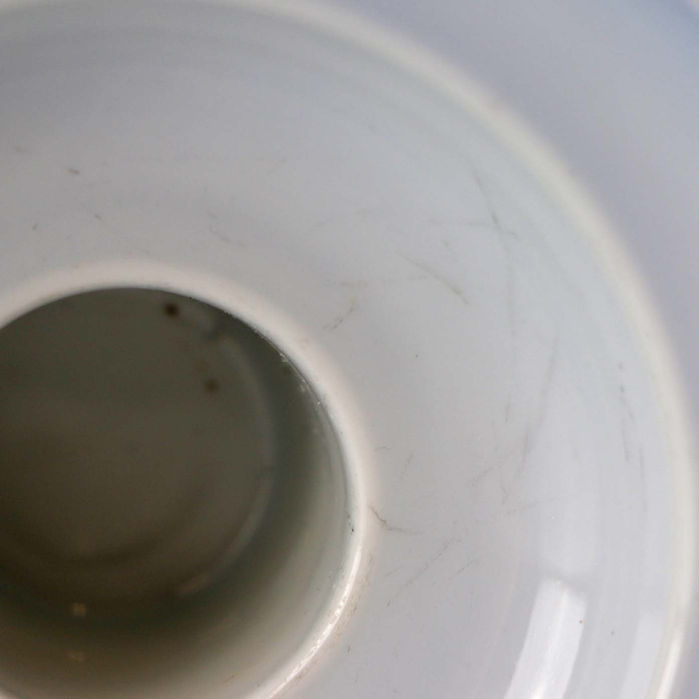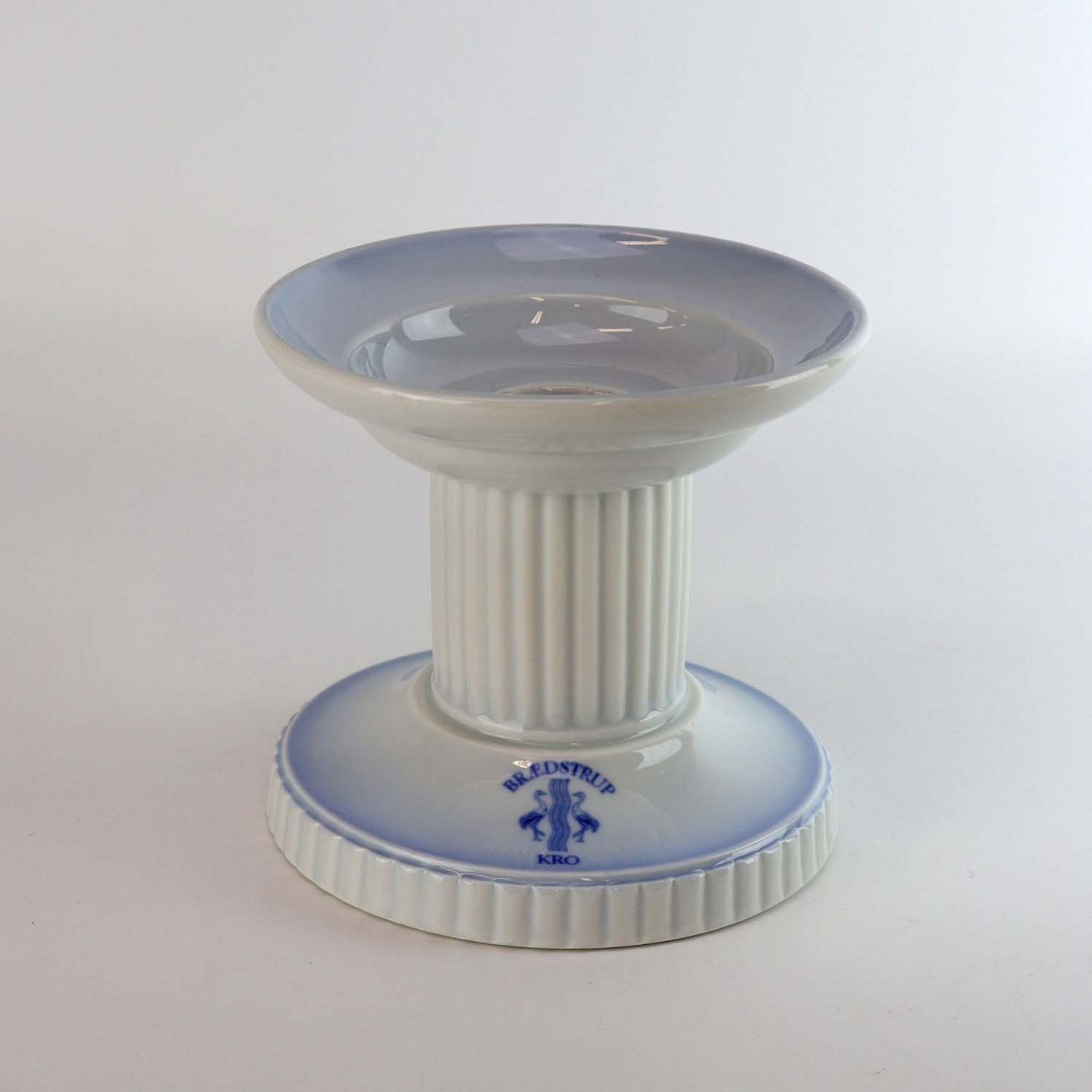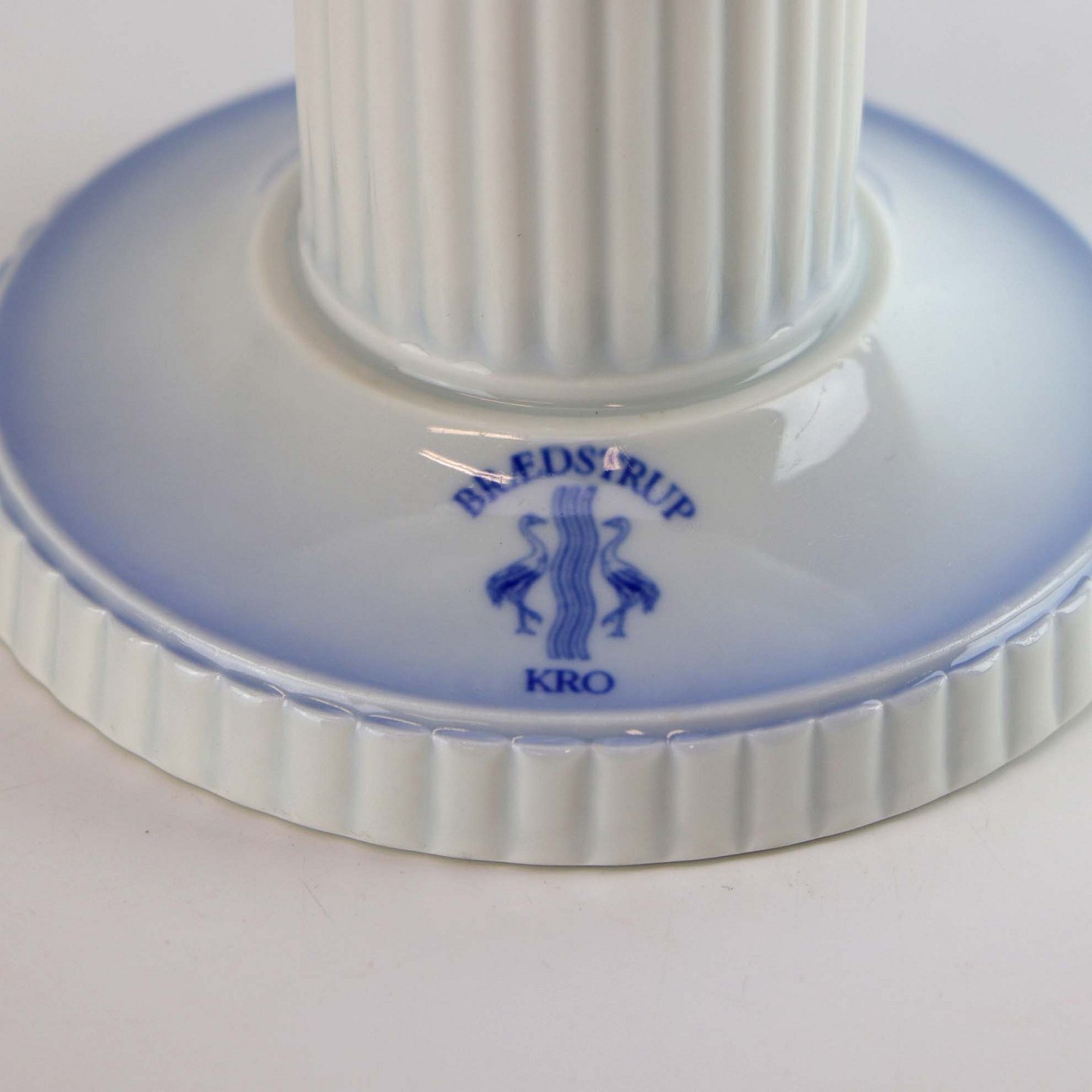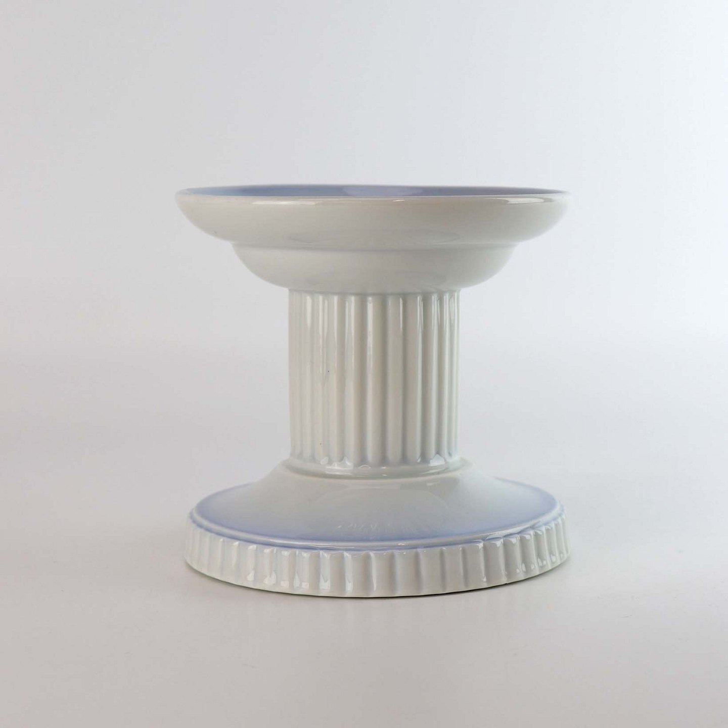 Lysestage i porcelæn med lyseblå og hvide nuancer samt riflet stamme.