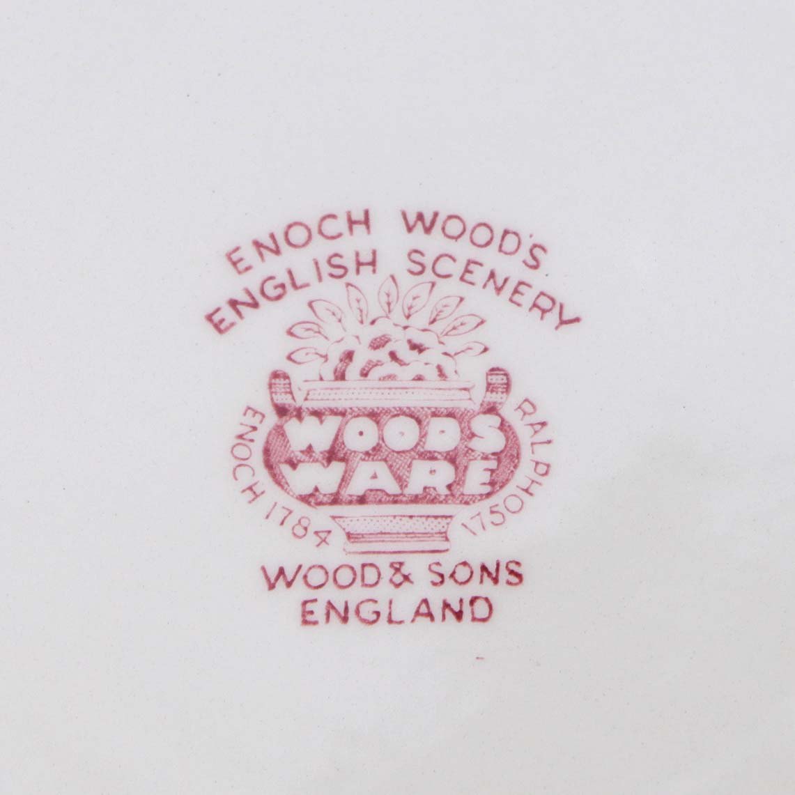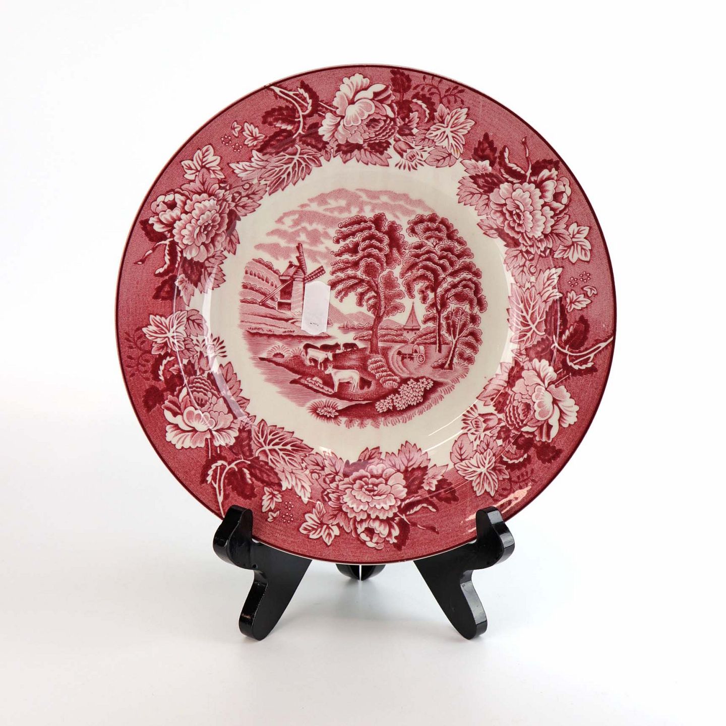 Dyb tallerken med bred kant fra det engelske stel Rød Paris (Enoch wood's, English scenery)
