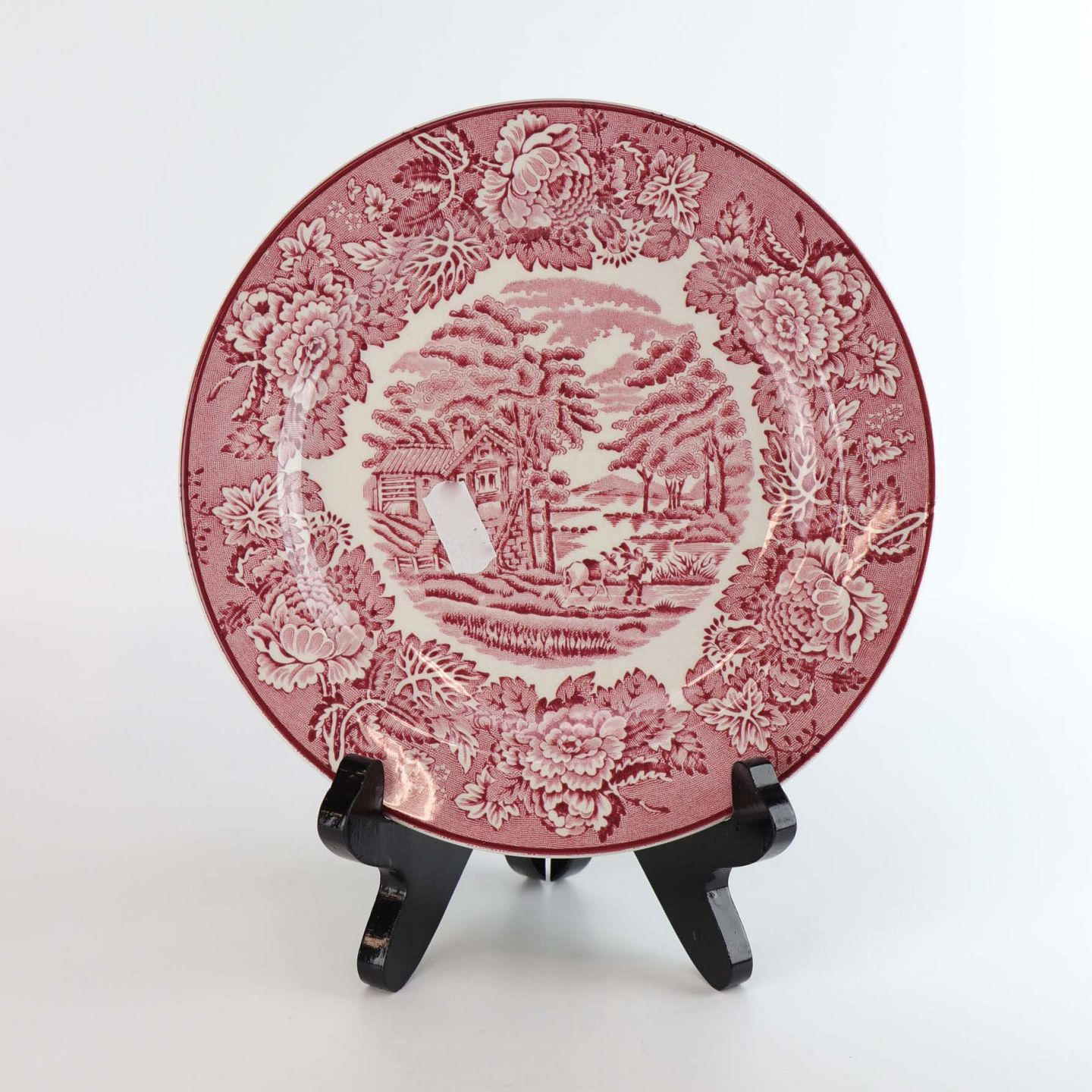 Frokosttallerken fra det engelske stel Rød Paris (Enoch wood's, English scenery)