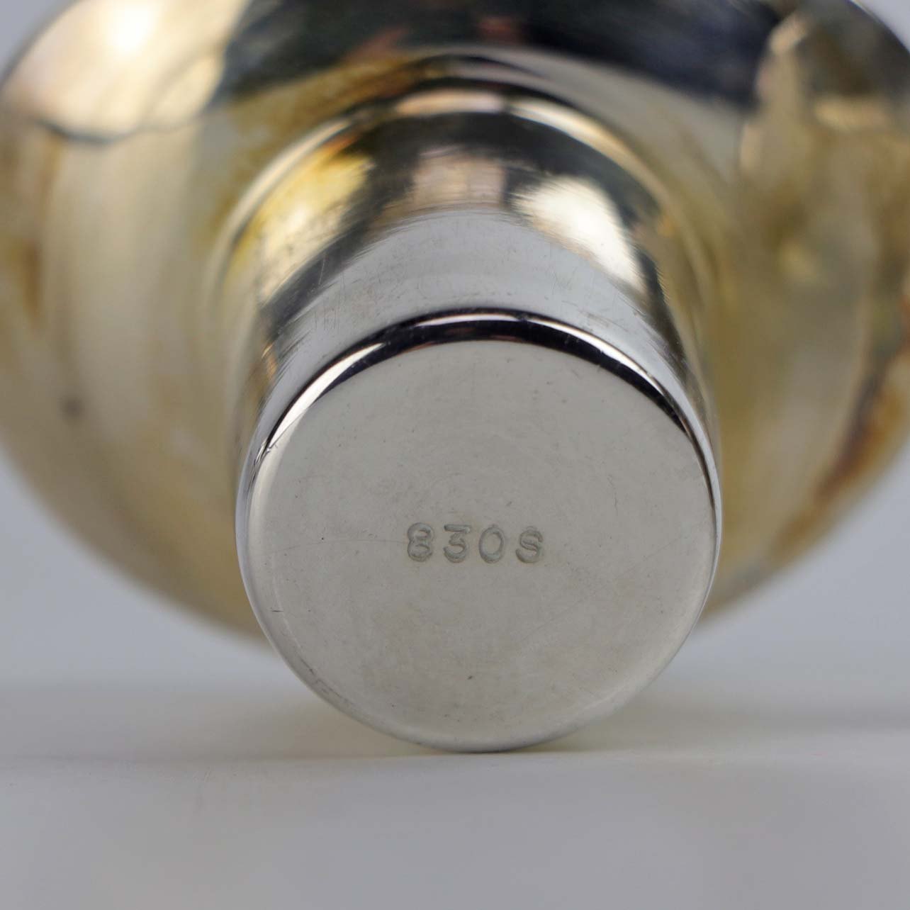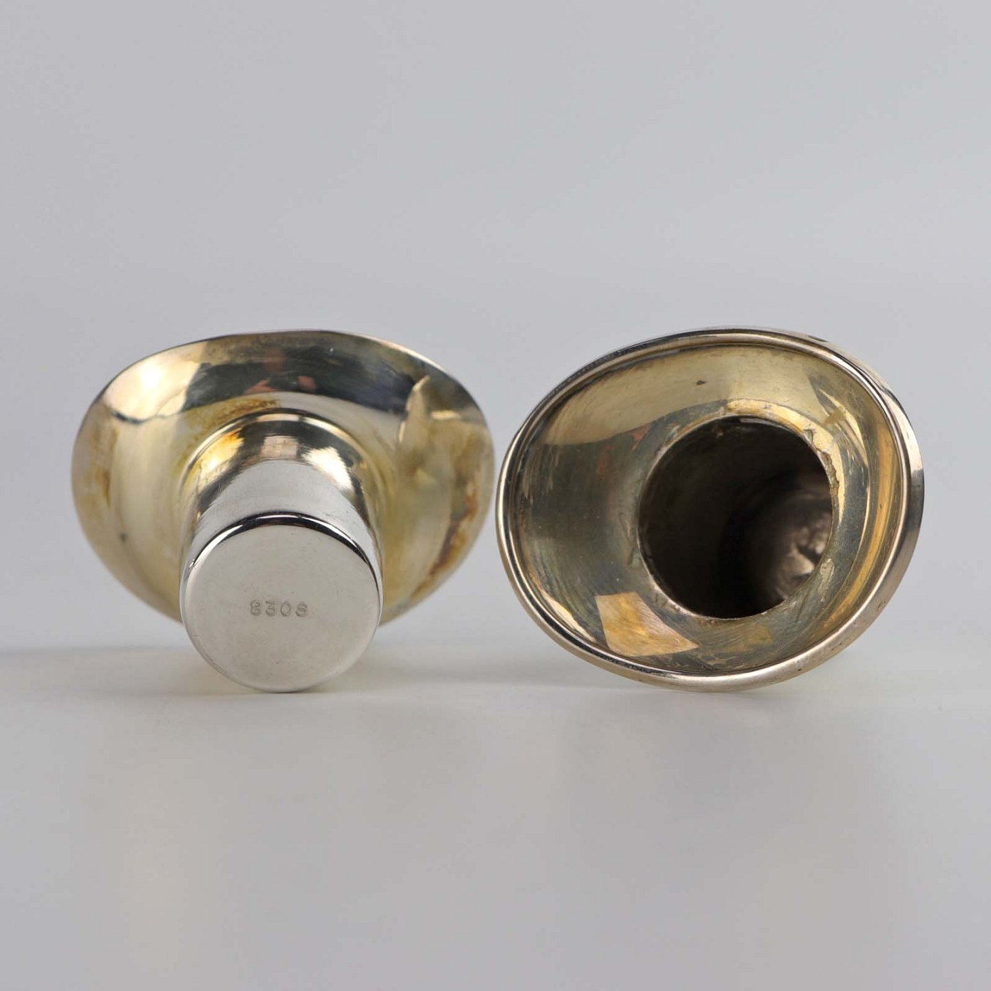 Et sæt lysestager i sølv med oval fod og aftagelige toppe