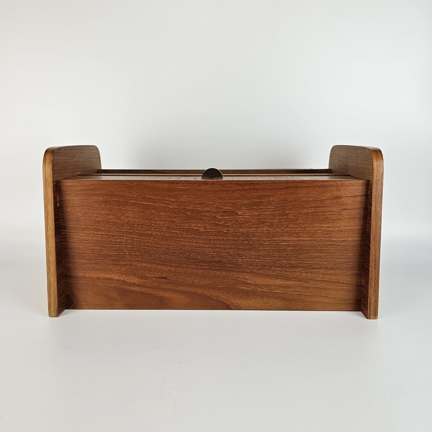 To væghængt natborde af teaktræ. 1 skuffe og 1 hylde